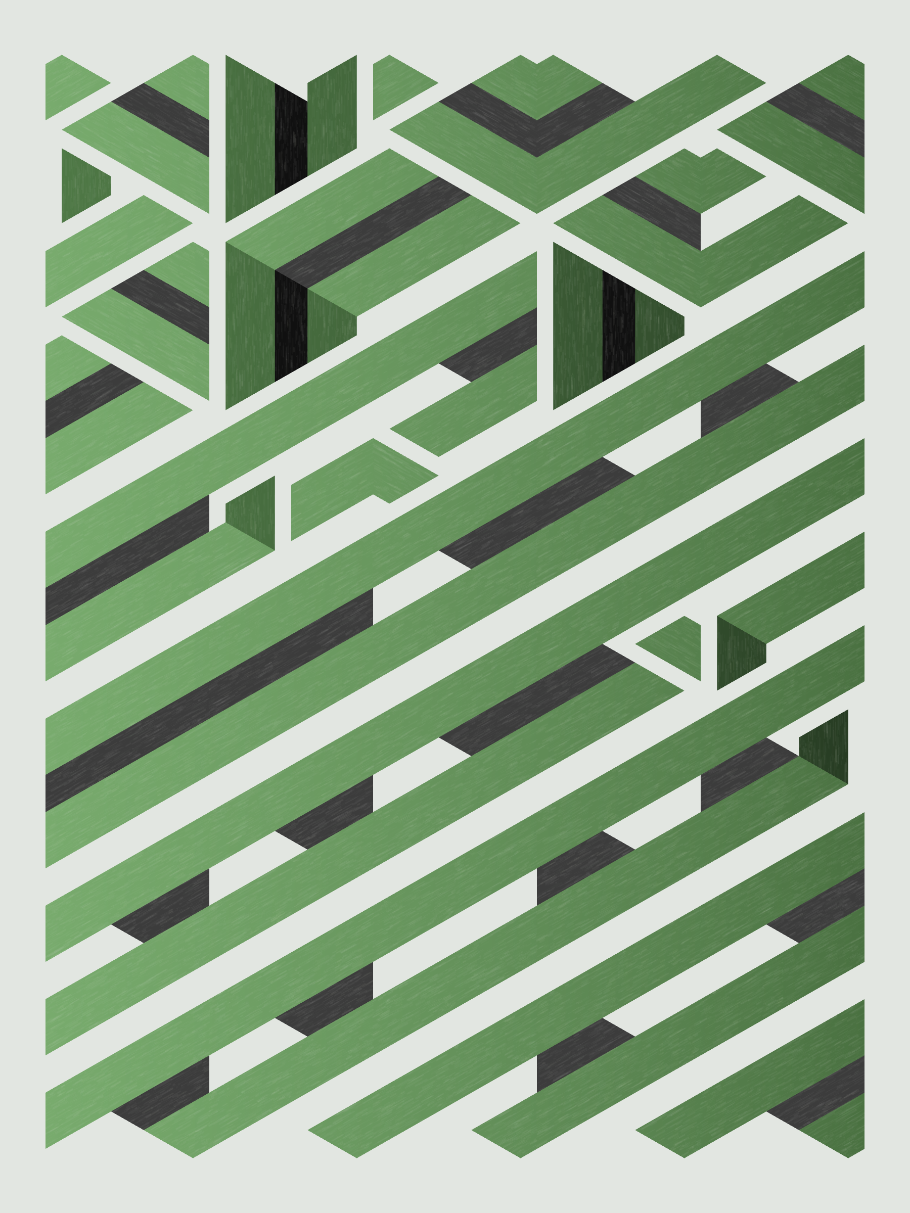 Lines are bent and shaded. There are no wrong turns. [Interaction in live view: press 1-7 or left/right arrow keys to see the stages of sketch construction: 1-grid, 2-divide, 3-tile, 4-bend, 5-shade, 6-color, 7-texture]