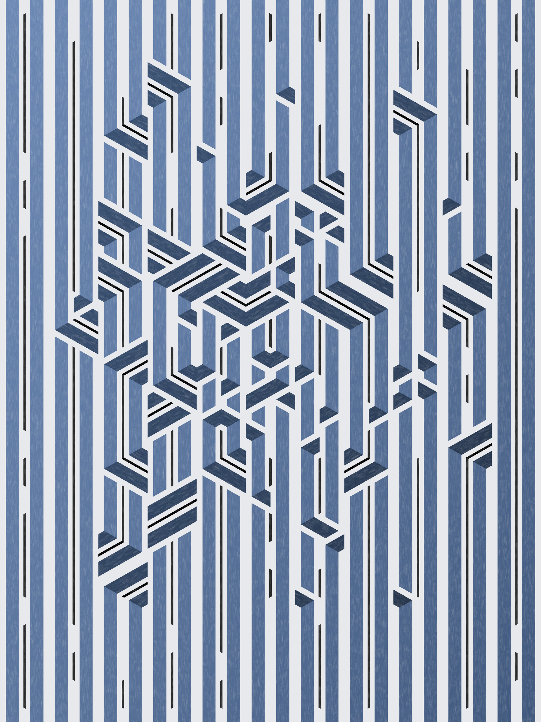 Lines are bent and shaded. There are no wrong turns. [Interaction in live view: press 1-7 or left/right arrow keys to see the stages of sketch construction: 1-grid, 2-divide, 3-tile, 4-bend, 5-shade, 6-color, 7-texture]