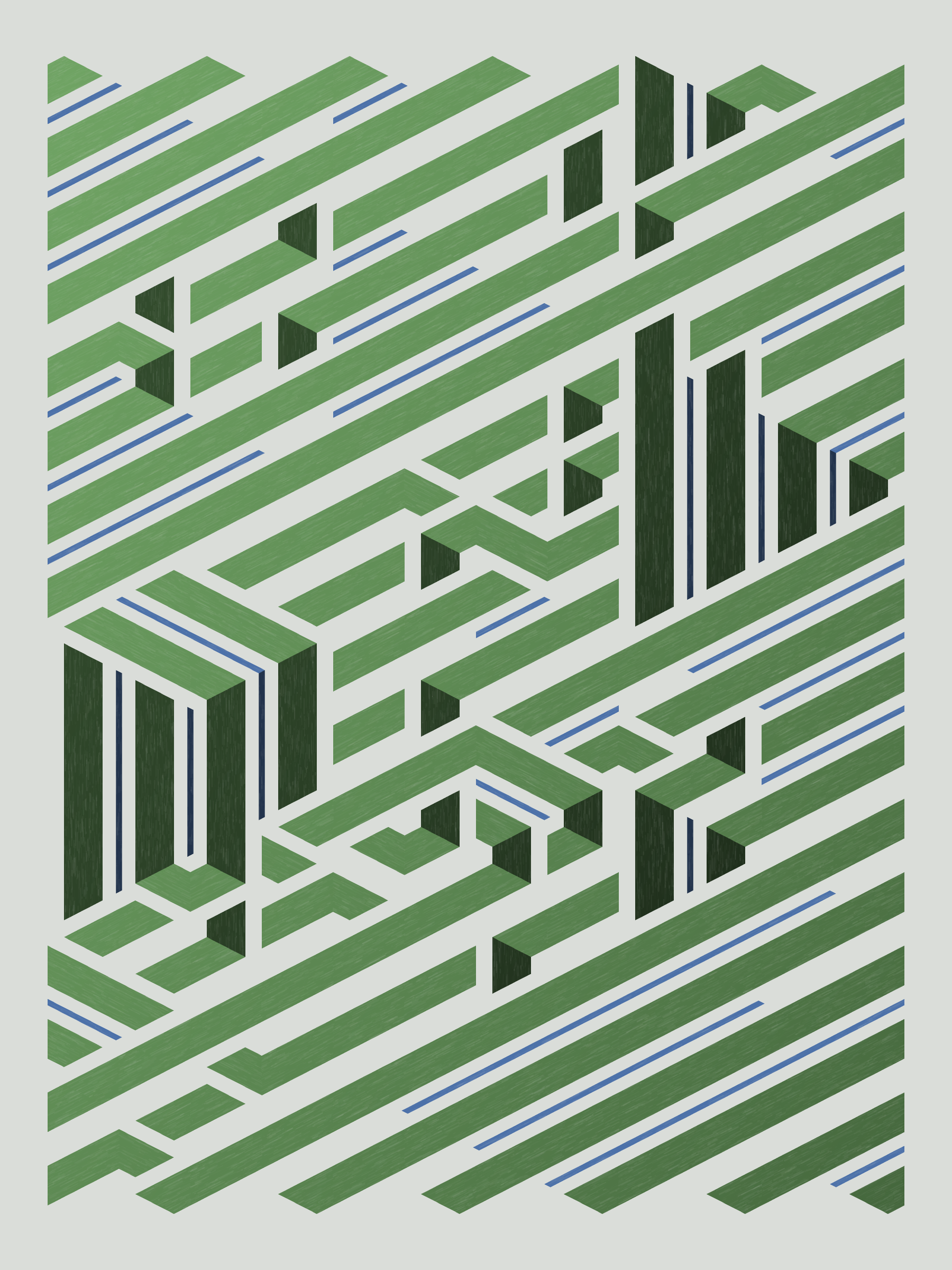 Lines are bent and shaded. There are no wrong turns. [Interaction in live view: press 1-7 or left/right arrow keys to see the stages of sketch construction: 1-grid, 2-divide, 3-tile, 4-bend, 5-shade, 6-color, 7-texture]