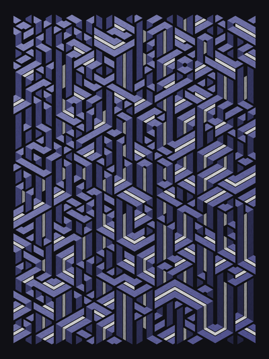 Lines are bent and shaded. There are no wrong turns. [Interaction in live view: press 1-7 or left/right arrow keys to see the stages of sketch construction: 1-grid, 2-divide, 3-tile, 4-bend, 5-shade, 6-color, 7-texture]