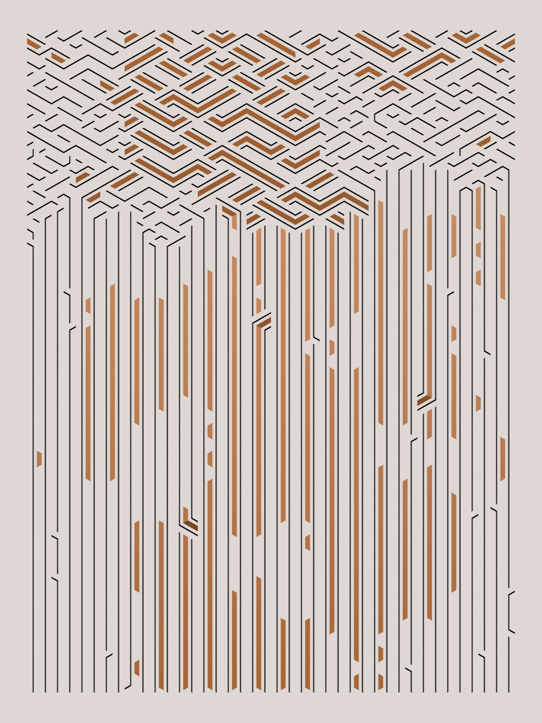 Lines are bent and shaded. There are no wrong turns. [Interaction in live view: press 1-7 or left/right arrow keys to see the stages of sketch construction: 1-grid, 2-divide, 3-tile, 4-bend, 5-shade, 6-color, 7-texture]