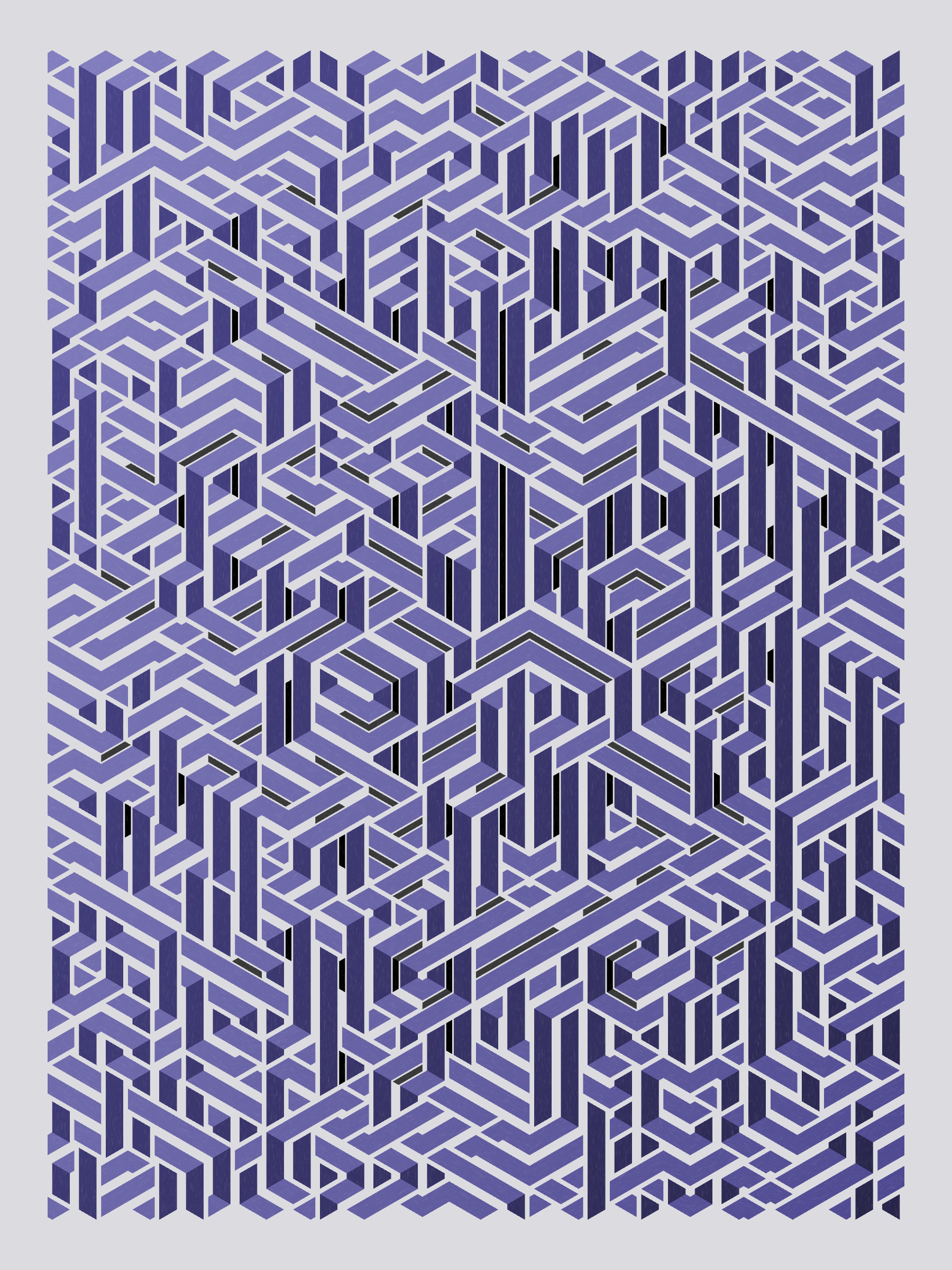 Lines are bent and shaded. There are no wrong turns. [Interaction in live view: press 1-7 or left/right arrow keys to see the stages of sketch construction: 1-grid, 2-divide, 3-tile, 4-bend, 5-shade, 6-color, 7-texture]