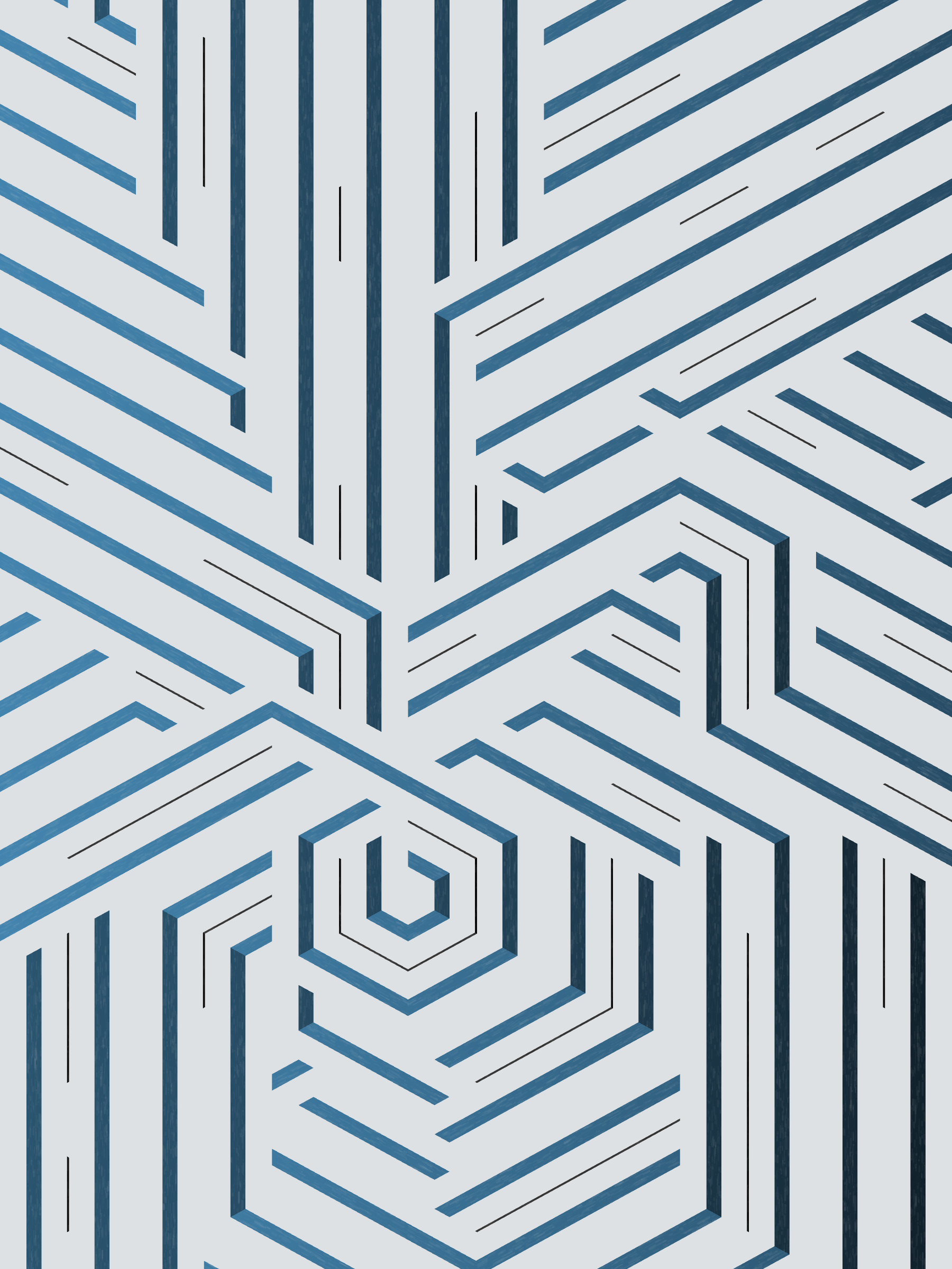 Lines are bent and shaded. There are no wrong turns. [Interaction in live view: press 1-7 or left/right arrow keys to see the stages of sketch construction: 1-grid, 2-divide, 3-tile, 4-bend, 5-shade, 6-color, 7-texture]