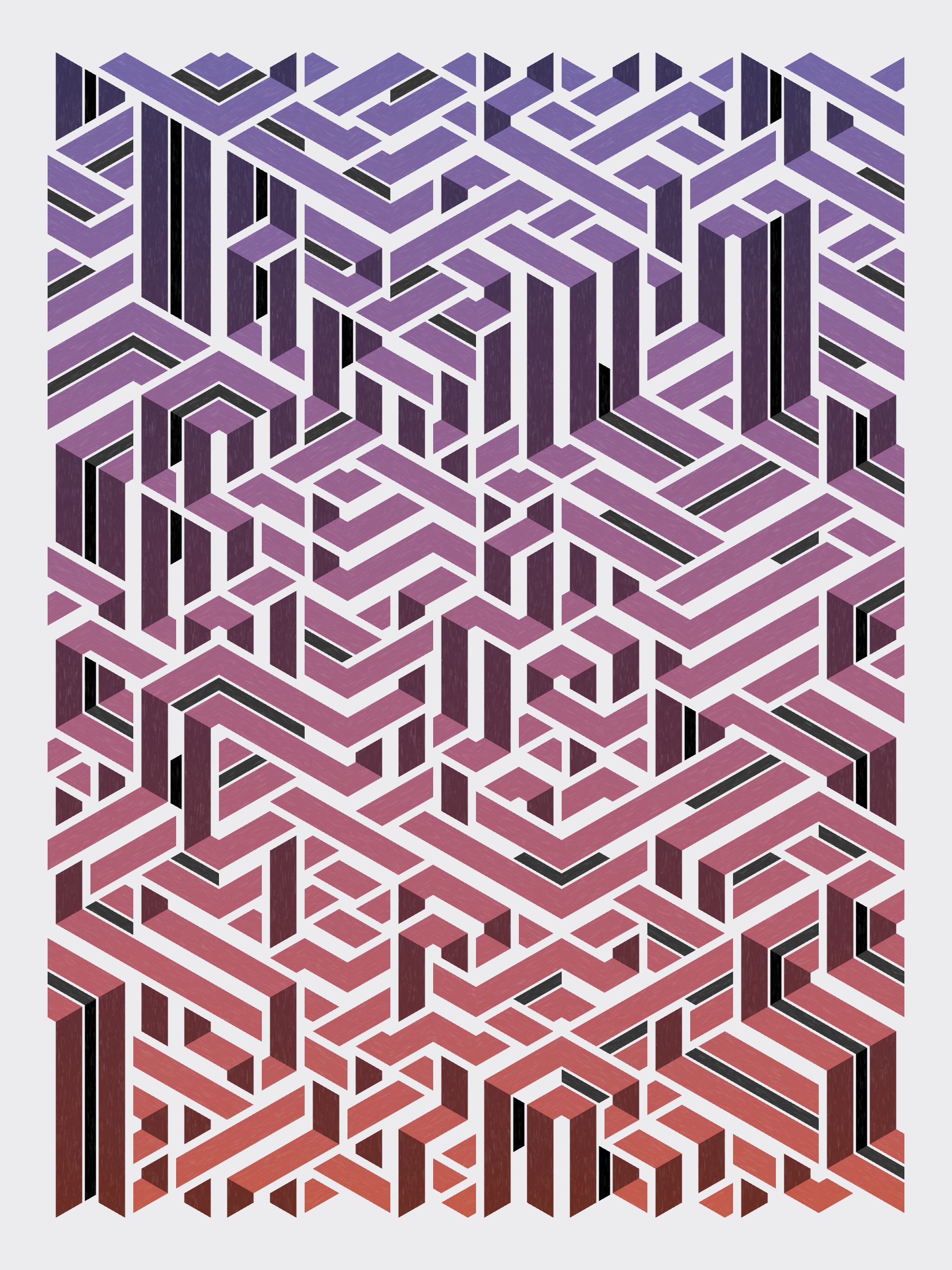 Lines are bent and shaded. There are no wrong turns. [Interaction in live view: press 1-7 or left/right arrow keys to see the stages of sketch construction: 1-grid, 2-divide, 3-tile, 4-bend, 5-shade, 6-color, 7-texture]