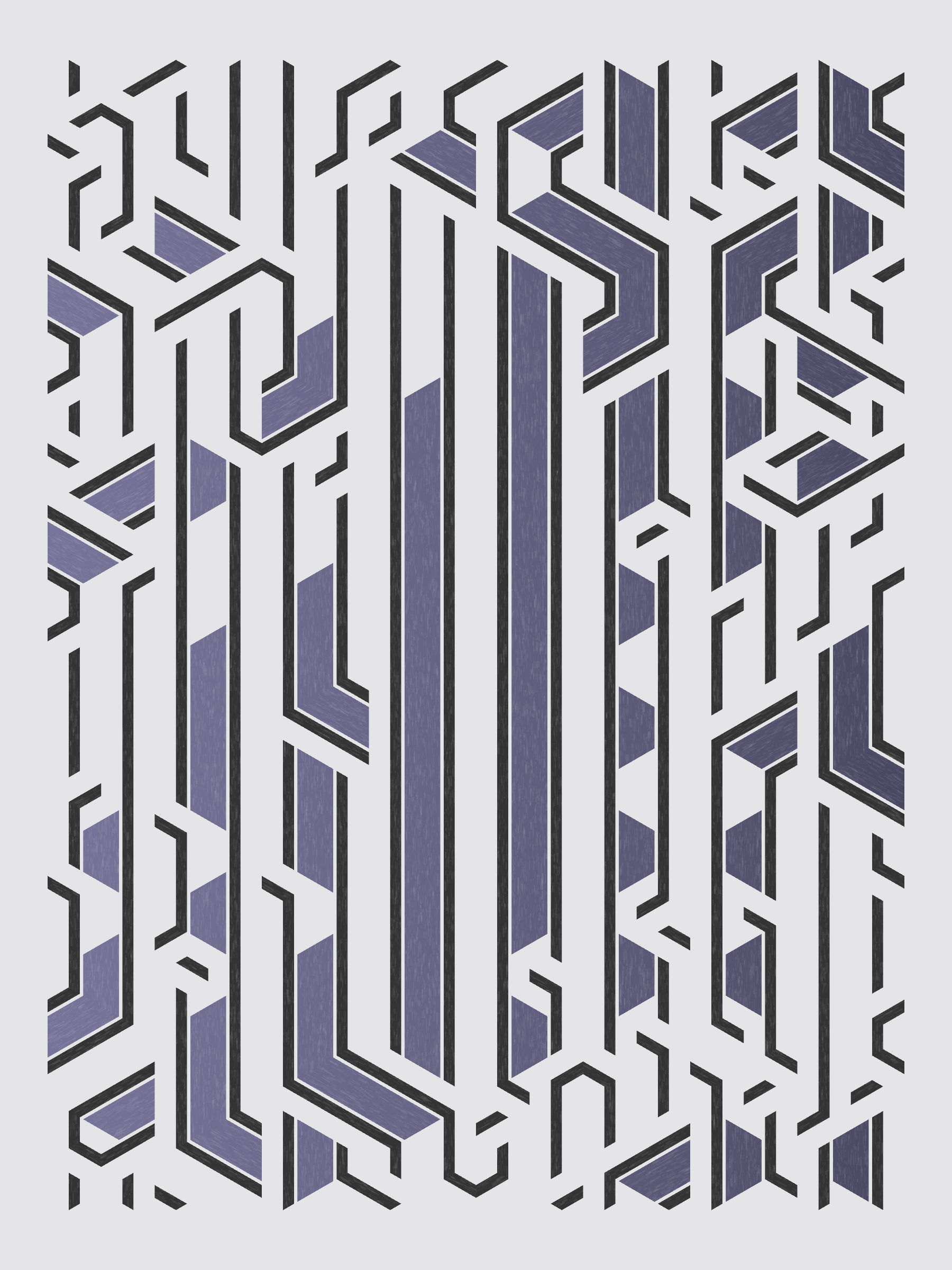Lines are bent and shaded. There are no wrong turns. [Interaction in live view: press 1-7 or left/right arrow keys to see the stages of sketch construction: 1-grid, 2-divide, 3-tile, 4-bend, 5-shade, 6-color, 7-texture]
