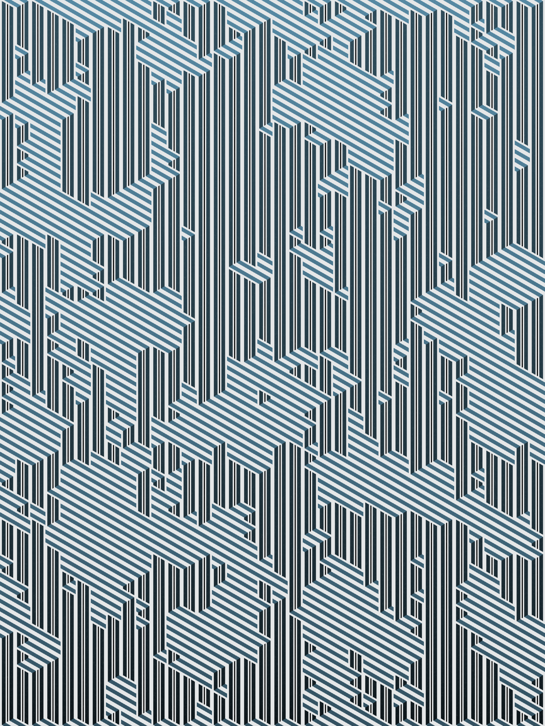 Lines are bent and shaded. There are no wrong turns. [Interaction in live view: press 1-7 or left/right arrow keys to see the stages of sketch construction: 1-grid, 2-divide, 3-tile, 4-bend, 5-shade, 6-color, 7-texture]