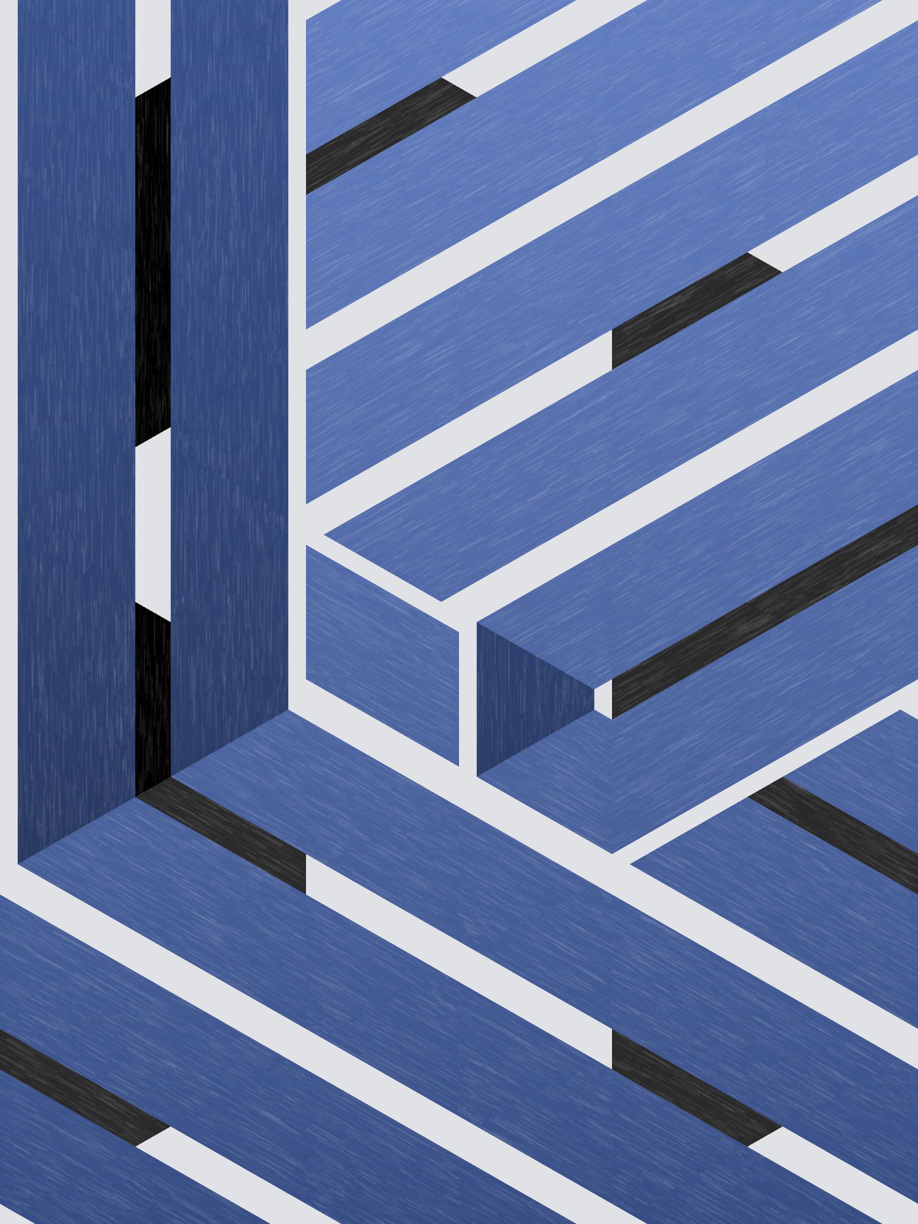Lines are bent and shaded. There are no wrong turns. [Interaction in live view: press 1-7 or left/right arrow keys to see the stages of sketch construction: 1-grid, 2-divide, 3-tile, 4-bend, 5-shade, 6-color, 7-texture]