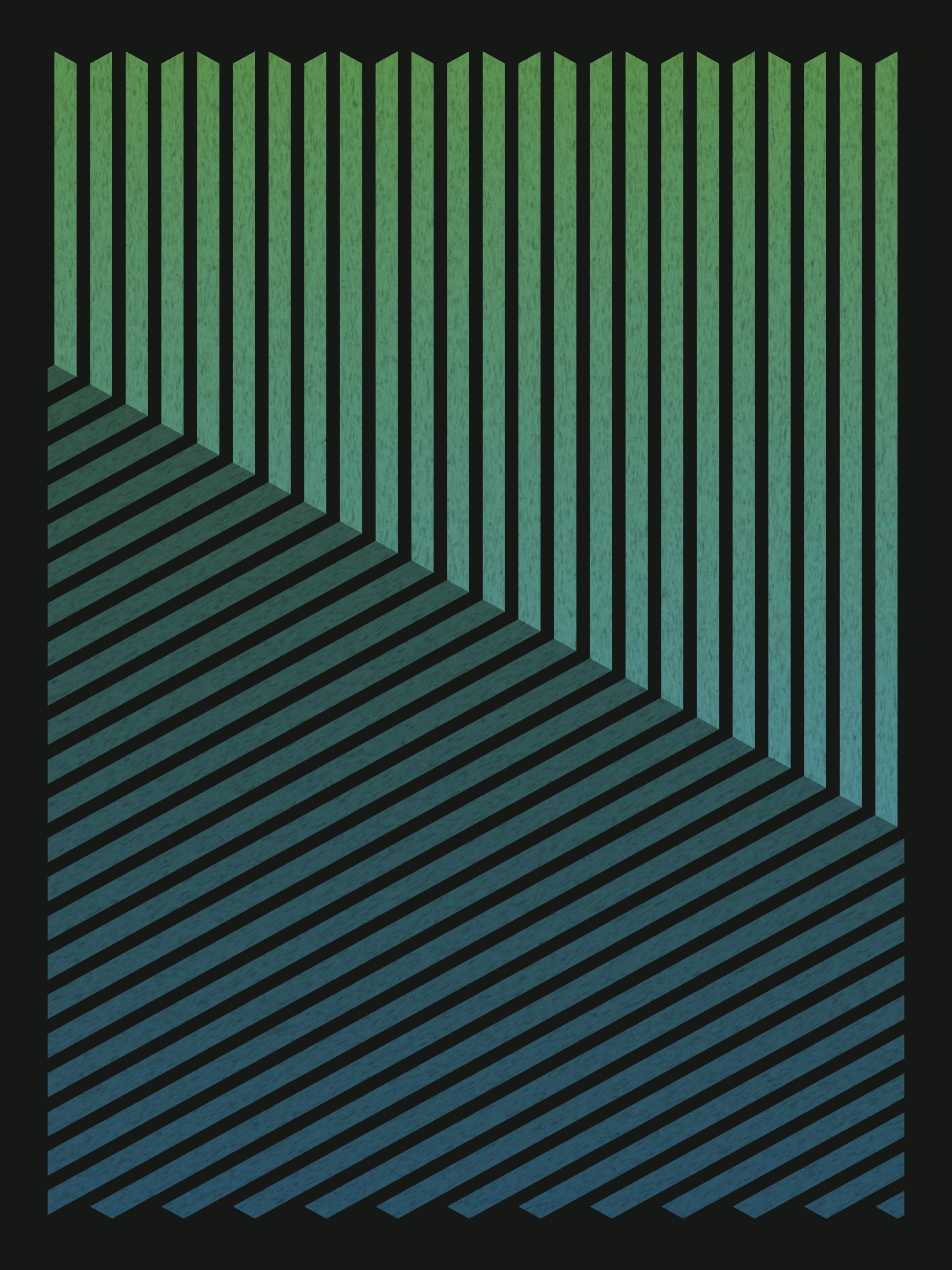 Lines are bent and shaded. There are no wrong turns. [Interaction in live view: press 1-7 or left/right arrow keys to see the stages of sketch construction: 1-grid, 2-divide, 3-tile, 4-bend, 5-shade, 6-color, 7-texture]