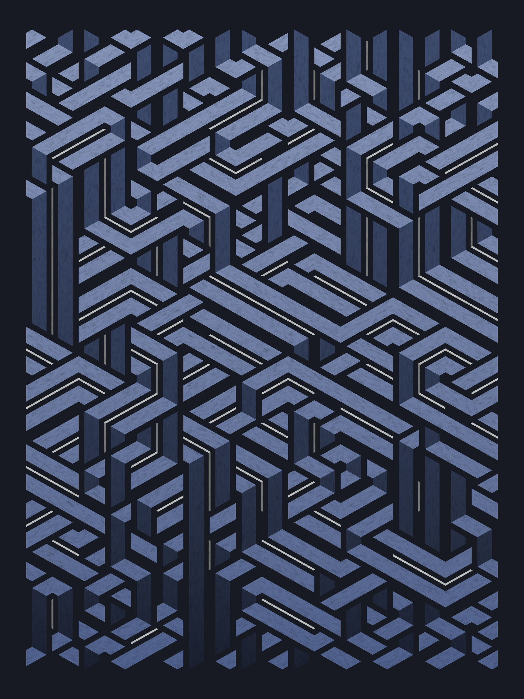 Lines are bent and shaded. There are no wrong turns. [Interaction in live view: press 1-7 or left/right arrow keys to see the stages of sketch construction: 1-grid, 2-divide, 3-tile, 4-bend, 5-shade, 6-color, 7-texture]