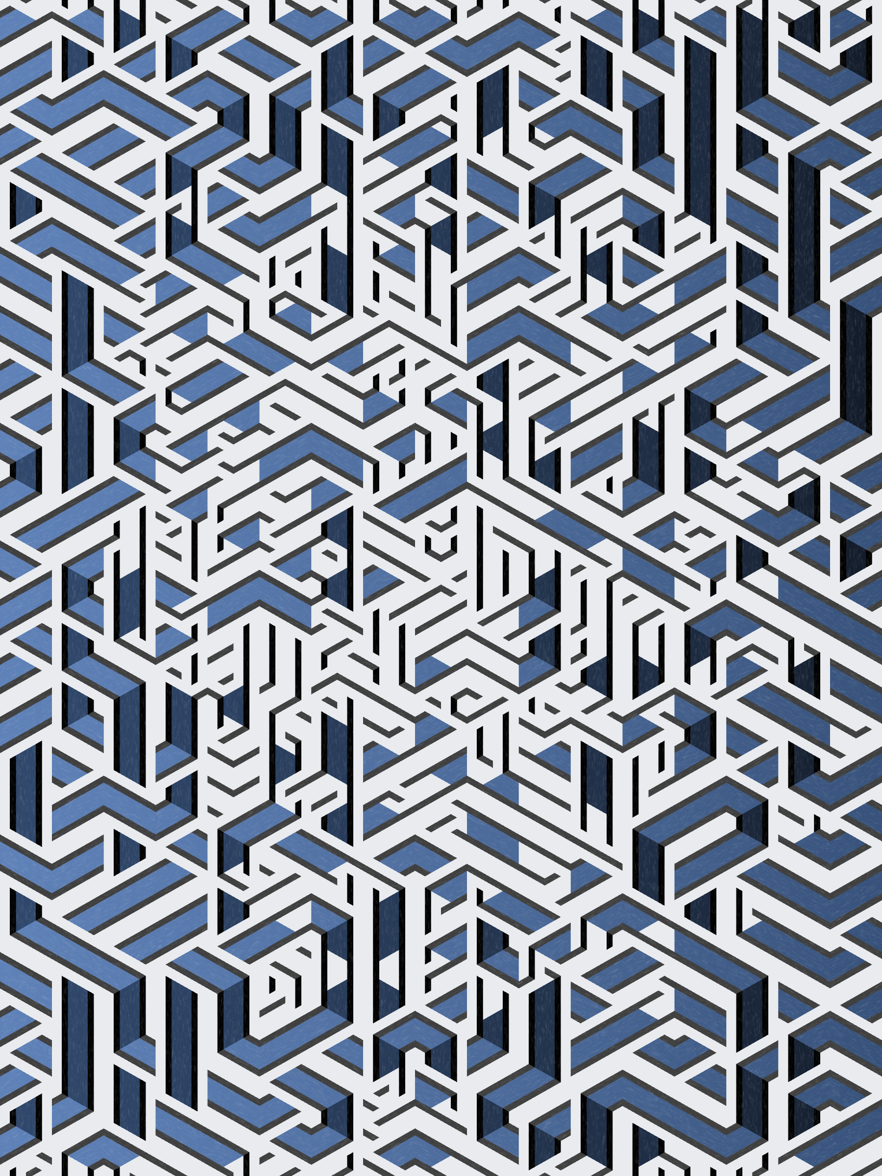 Lines are bent and shaded. There are no wrong turns. [Interaction in live view: press 1-7 or left/right arrow keys to see the stages of sketch construction: 1-grid, 2-divide, 3-tile, 4-bend, 5-shade, 6-color, 7-texture]