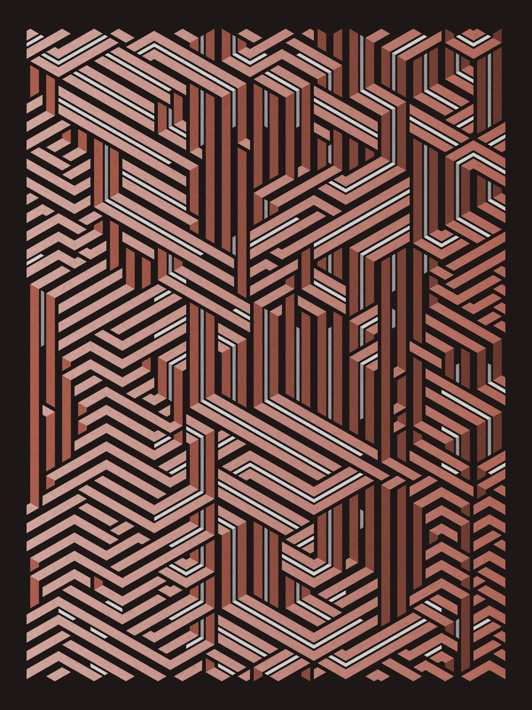 Lines are bent and shaded. There are no wrong turns. [Interaction in live view: press 1-7 or left/right arrow keys to see the stages of sketch construction: 1-grid, 2-divide, 3-tile, 4-bend, 5-shade, 6-color, 7-texture]