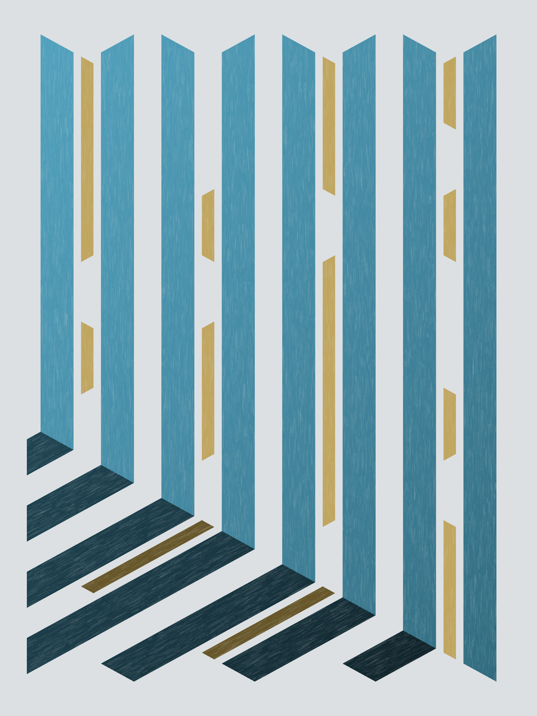 Lines are bent and shaded. There are no wrong turns. [Interaction in live view: press 1-7 or left/right arrow keys to see the stages of sketch construction: 1-grid, 2-divide, 3-tile, 4-bend, 5-shade, 6-color, 7-texture]