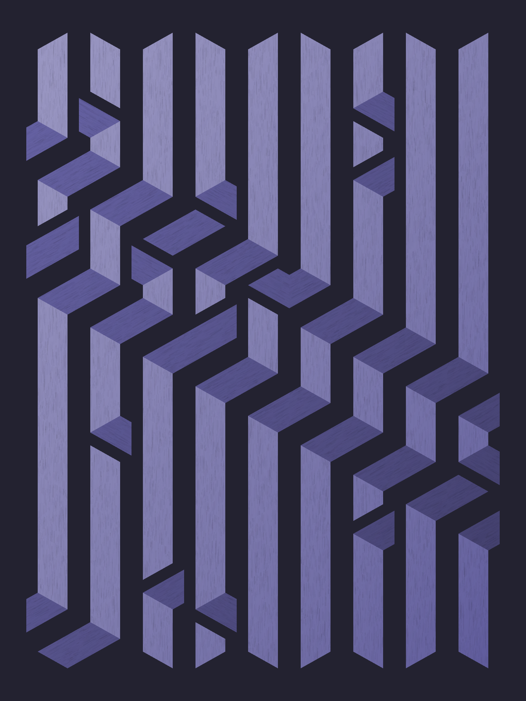 Lines are bent and shaded. There are no wrong turns. [Interaction in live view: press 1-7 or left/right arrow keys to see the stages of sketch construction: 1-grid, 2-divide, 3-tile, 4-bend, 5-shade, 6-color, 7-texture]
