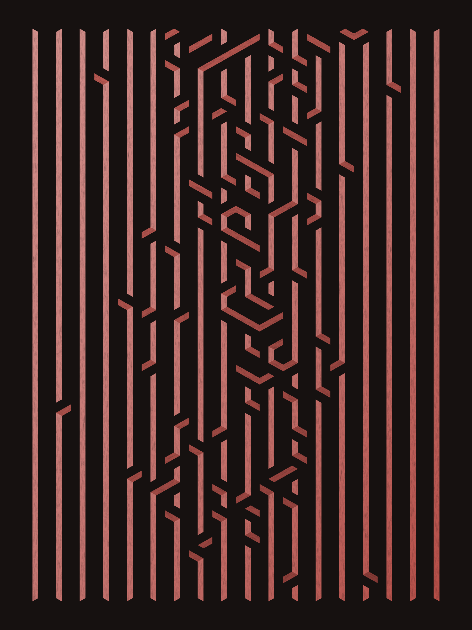 Lines are bent and shaded. There are no wrong turns. [Interaction in live view: press 1-7 or left/right arrow keys to see the stages of sketch construction: 1-grid, 2-divide, 3-tile, 4-bend, 5-shade, 6-color, 7-texture]