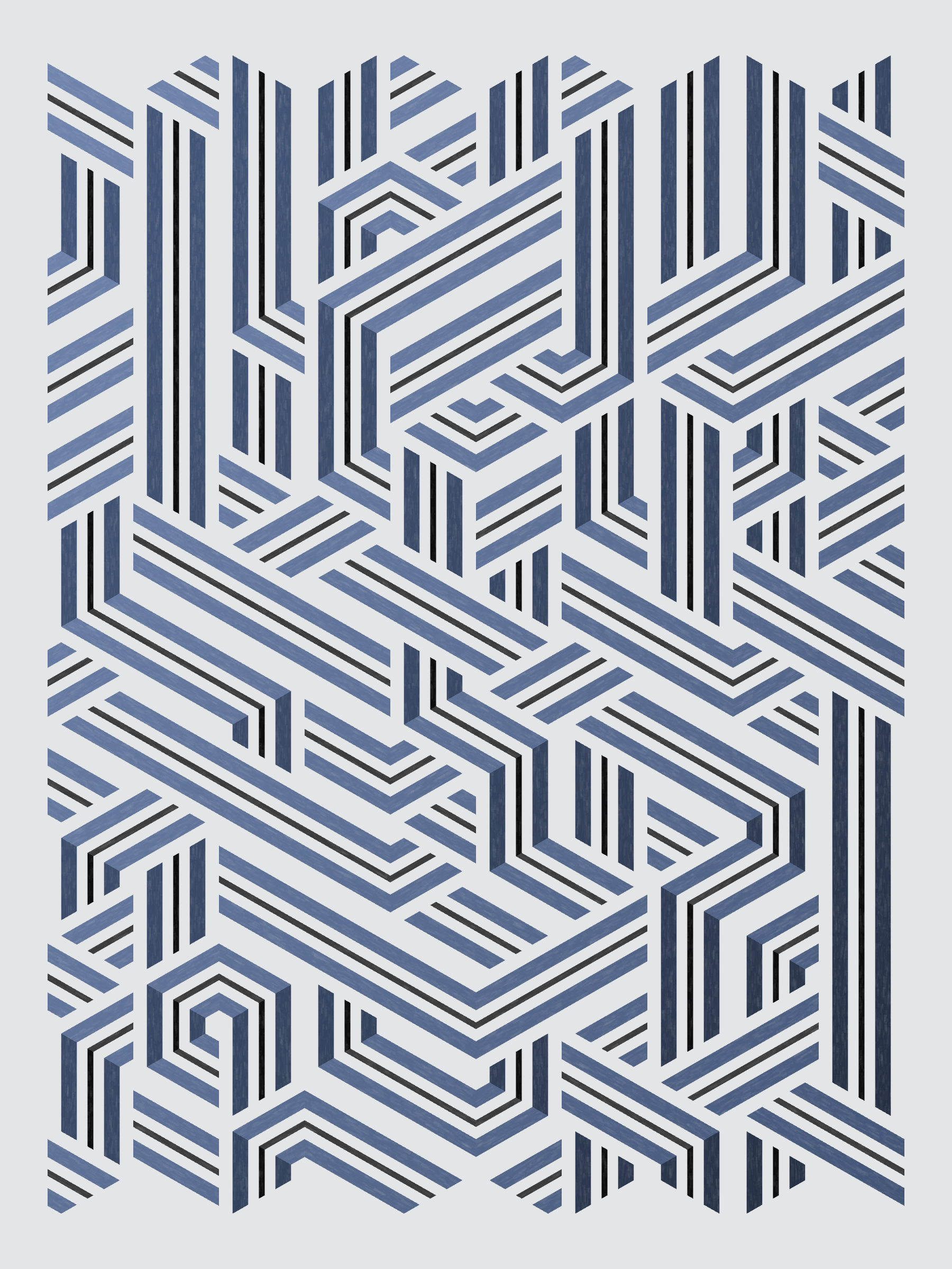 Lines are bent and shaded. There are no wrong turns. [Interaction in live view: press 1-7 or left/right arrow keys to see the stages of sketch construction: 1-grid, 2-divide, 3-tile, 4-bend, 5-shade, 6-color, 7-texture]