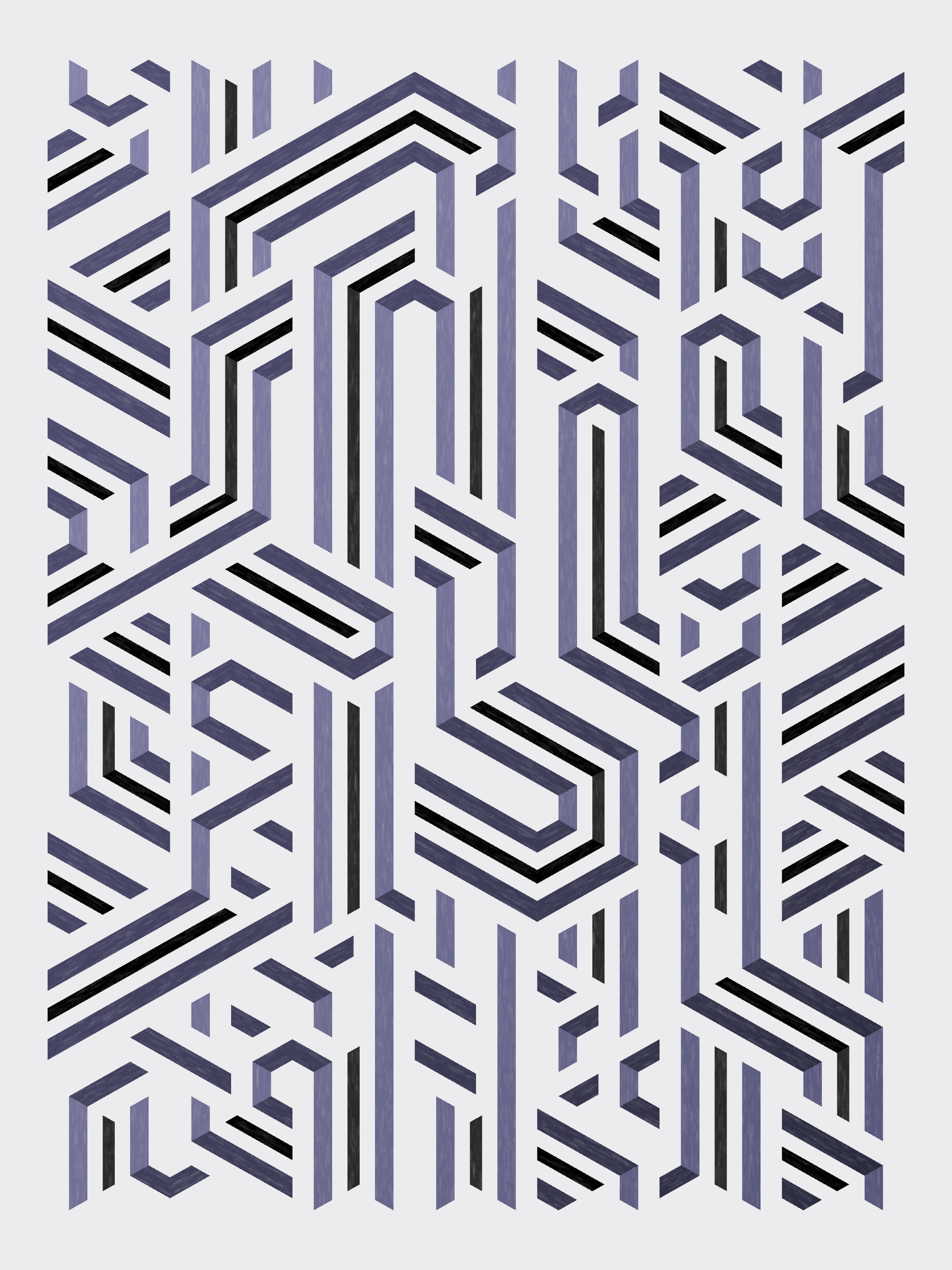 Lines are bent and shaded. There are no wrong turns. [Interaction in live view: press 1-7 or left/right arrow keys to see the stages of sketch construction: 1-grid, 2-divide, 3-tile, 4-bend, 5-shade, 6-color, 7-texture]
