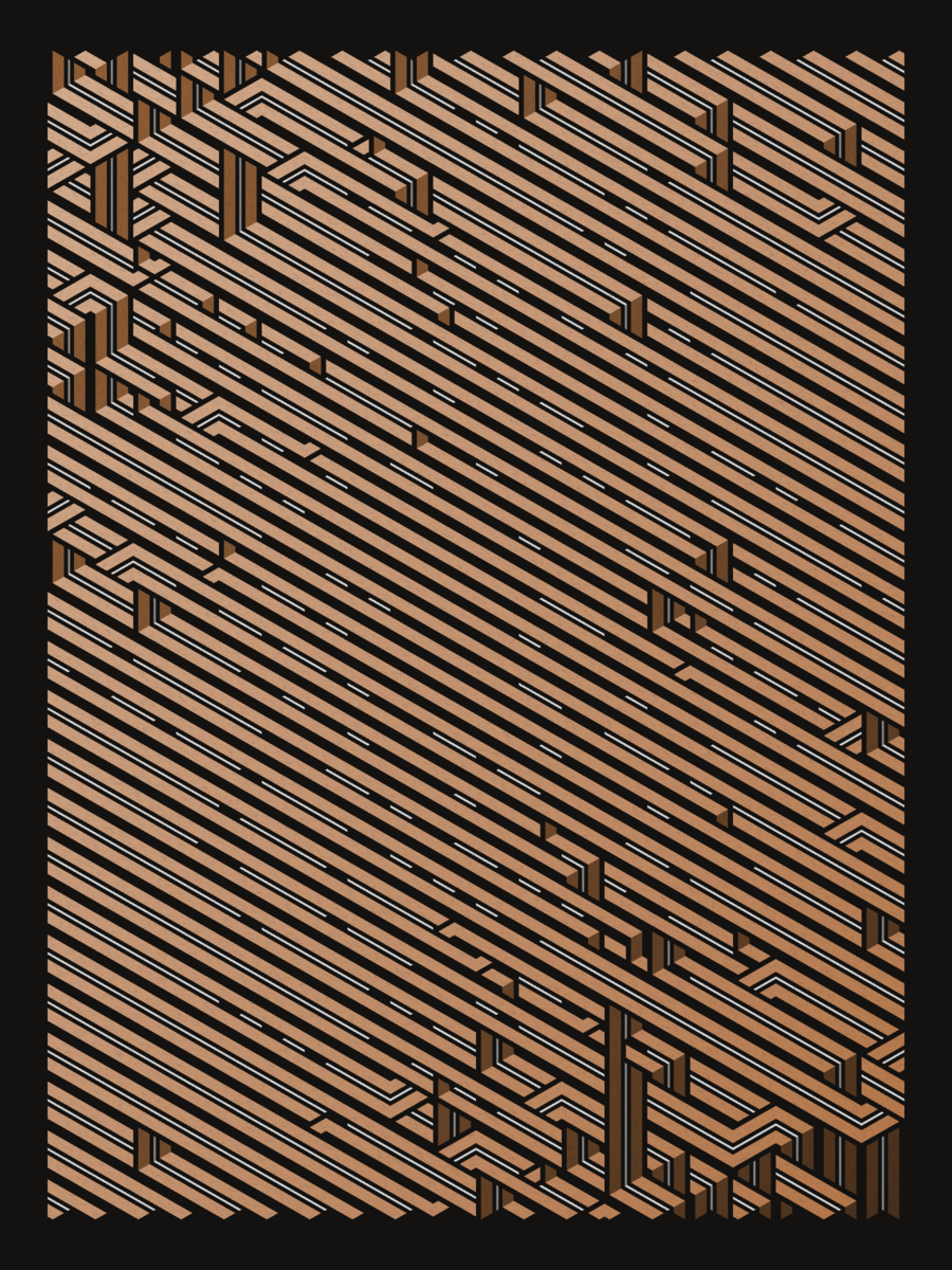 Lines are bent and shaded. There are no wrong turns. [Interaction in live view: press 1-7 or left/right arrow keys to see the stages of sketch construction: 1-grid, 2-divide, 3-tile, 4-bend, 5-shade, 6-color, 7-texture]