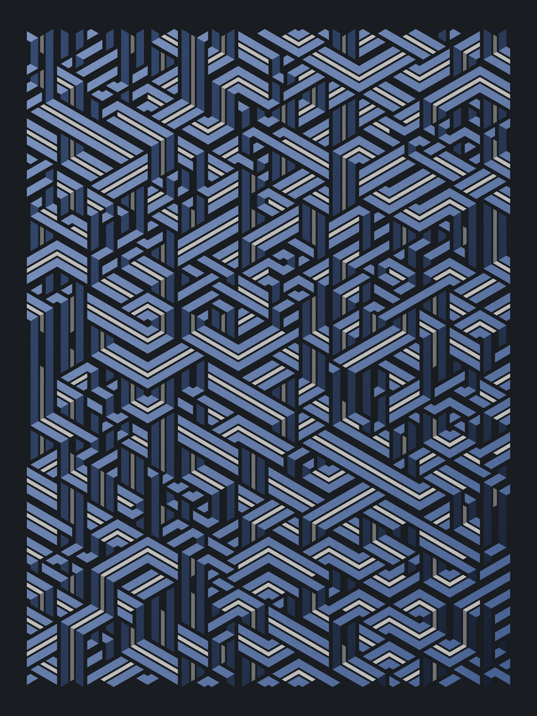 Lines are bent and shaded. There are no wrong turns. [Interaction in live view: press 1-7 or left/right arrow keys to see the stages of sketch construction: 1-grid, 2-divide, 3-tile, 4-bend, 5-shade, 6-color, 7-texture]