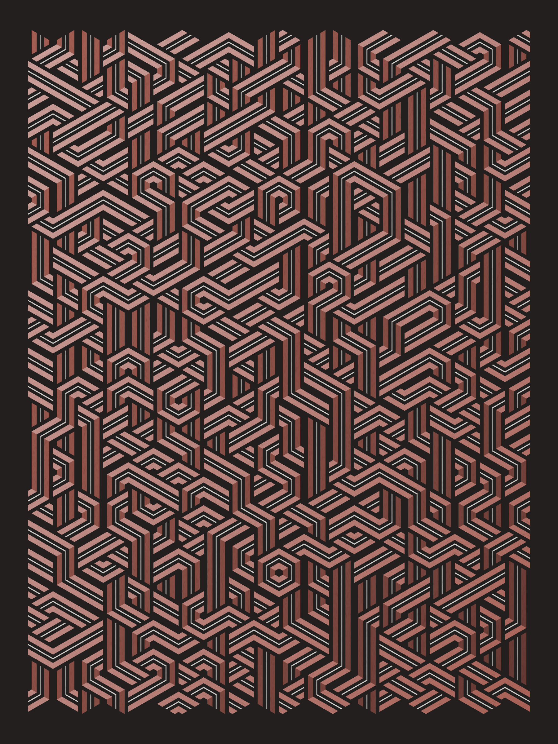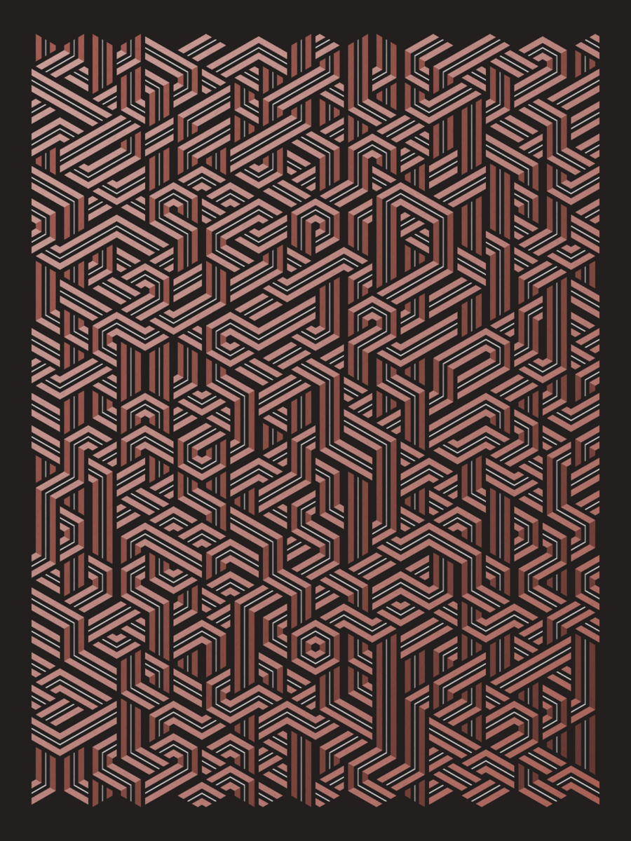 Lines are bent and shaded. There are no wrong turns. [Interaction in live view: press 1-7 or left/right arrow keys to see the stages of sketch construction: 1-grid, 2-divide, 3-tile, 4-bend, 5-shade, 6-color, 7-texture]