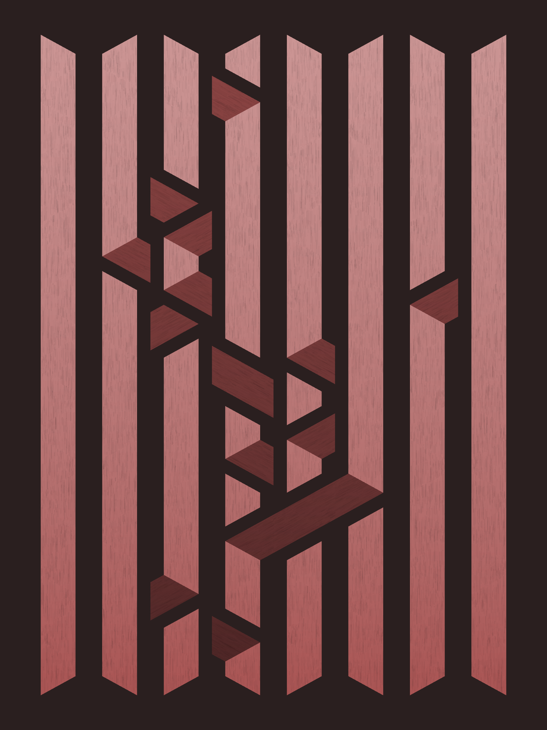 Lines are bent and shaded. There are no wrong turns. [Interaction in live view: press 1-7 or left/right arrow keys to see the stages of sketch construction: 1-grid, 2-divide, 3-tile, 4-bend, 5-shade, 6-color, 7-texture]