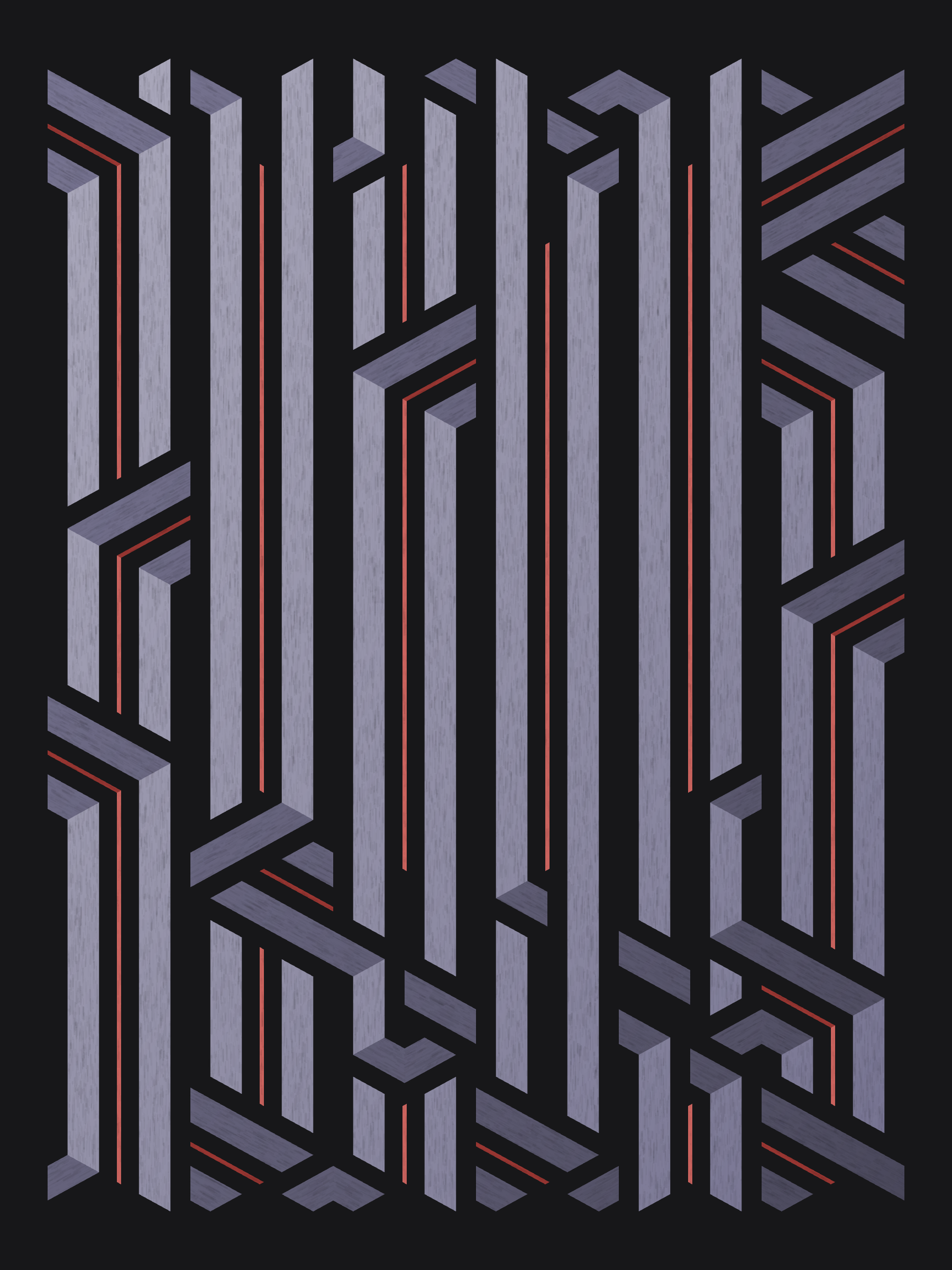 Lines are bent and shaded. There are no wrong turns. [Interaction in live view: press 1-7 or left/right arrow keys to see the stages of sketch construction: 1-grid, 2-divide, 3-tile, 4-bend, 5-shade, 6-color, 7-texture]