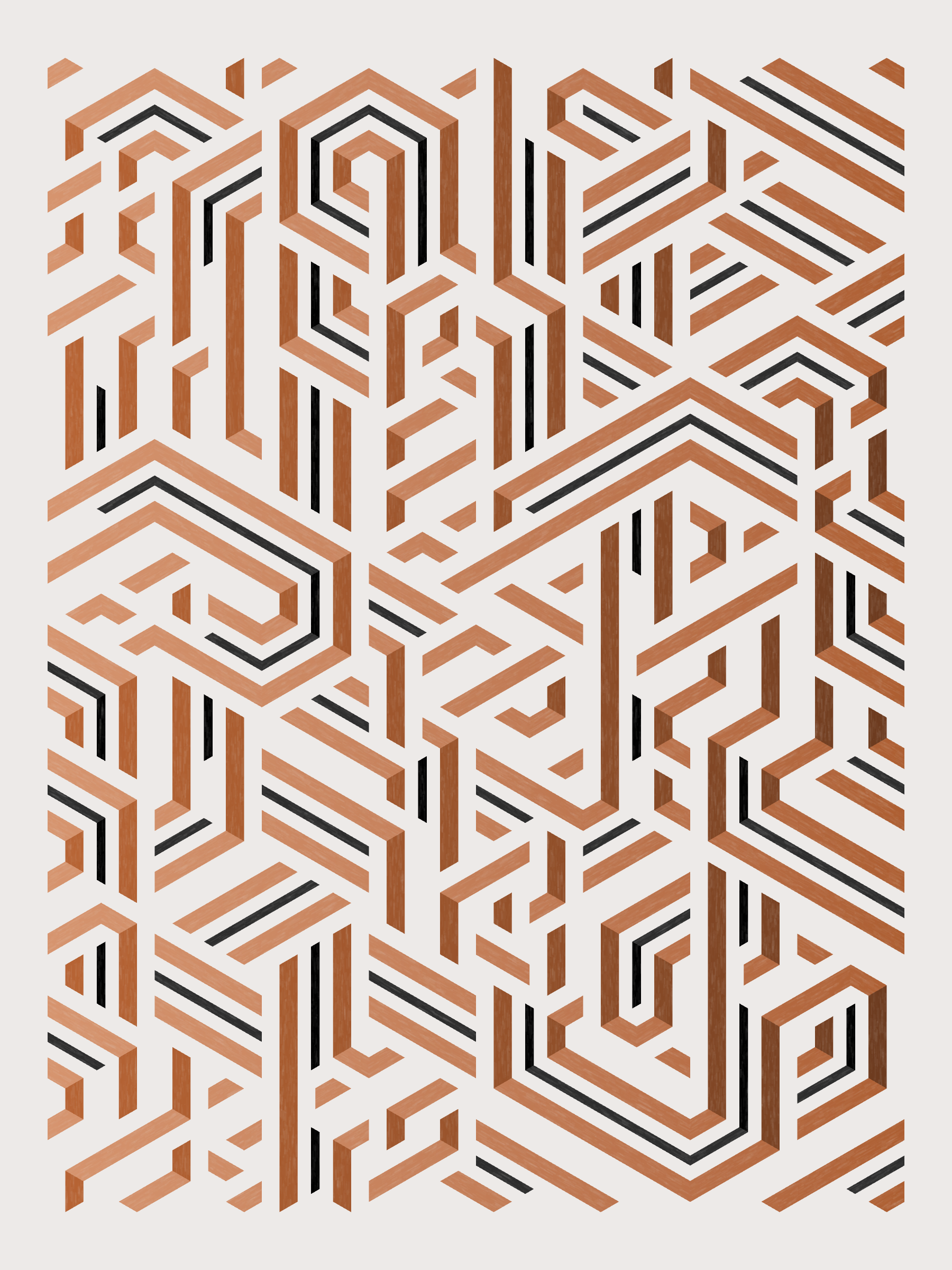 Lines are bent and shaded. There are no wrong turns. [Interaction in live view: press 1-7 or left/right arrow keys to see the stages of sketch construction: 1-grid, 2-divide, 3-tile, 4-bend, 5-shade, 6-color, 7-texture]