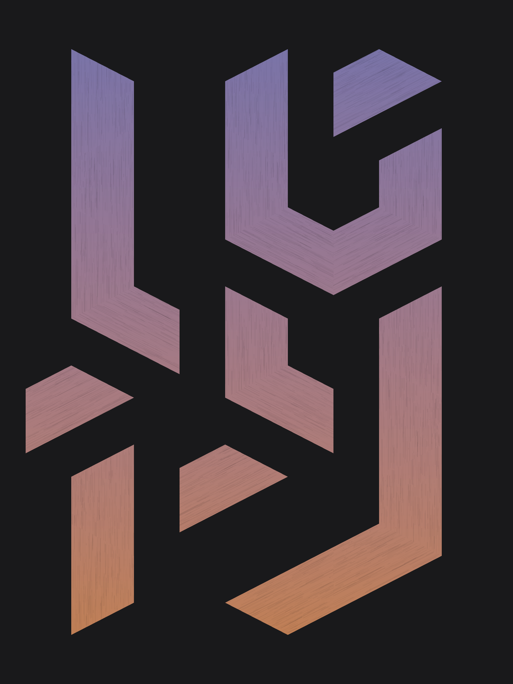 Lines are bent and shaded. There are no wrong turns. [Interaction in live view: press 1-7 or left/right arrow keys to see the stages of sketch construction: 1-grid, 2-divide, 3-tile, 4-bend, 5-shade, 6-color, 7-texture]