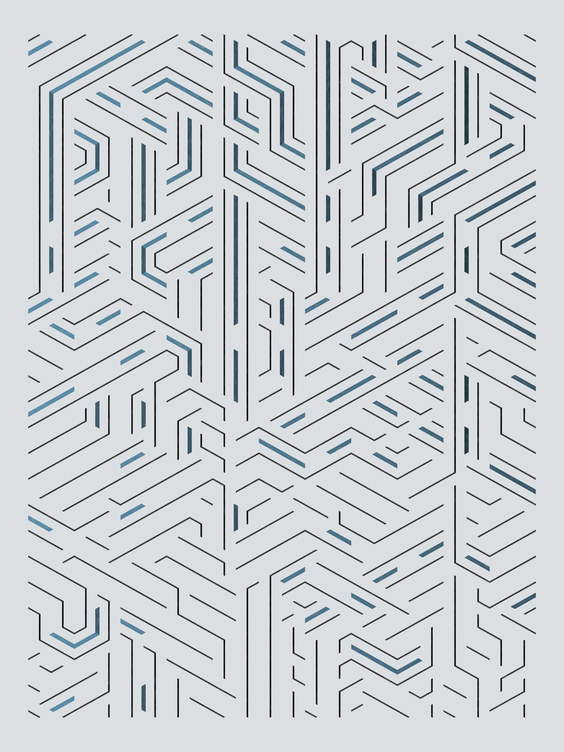 Lines are bent and shaded. There are no wrong turns. [Interaction in live view: press 1-7 or left/right arrow keys to see the stages of sketch construction: 1-grid, 2-divide, 3-tile, 4-bend, 5-shade, 6-color, 7-texture]