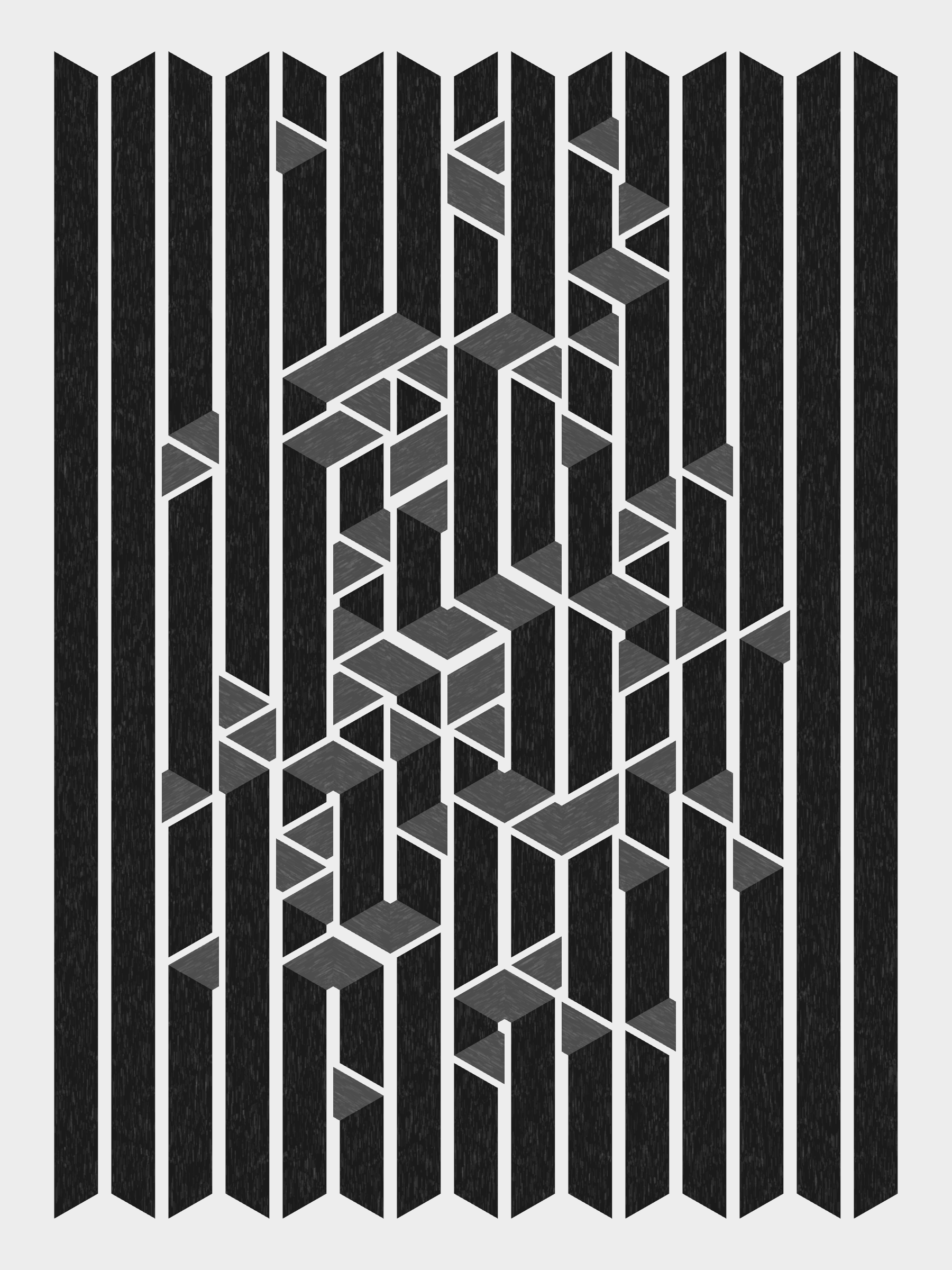 Lines are bent and shaded. There are no wrong turns. [Interaction in live view: press 1-7 or left/right arrow keys to see the stages of sketch construction: 1-grid, 2-divide, 3-tile, 4-bend, 5-shade, 6-color, 7-texture]