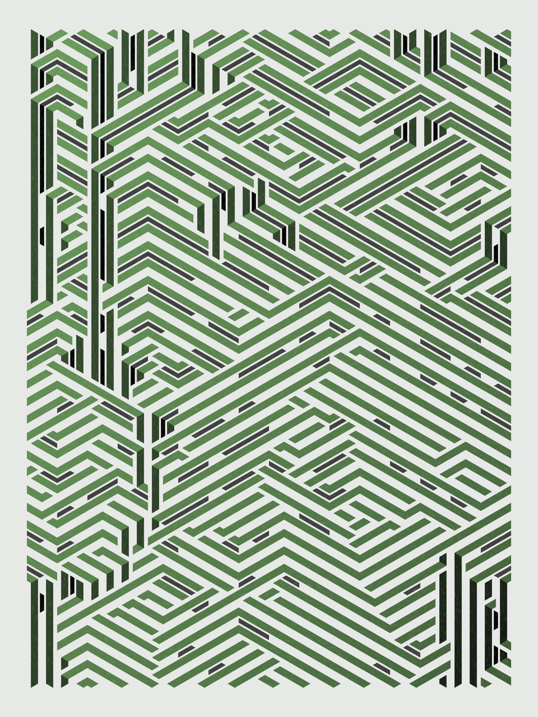 Lines are bent and shaded. There are no wrong turns. [Interaction in live view: press 1-7 or left/right arrow keys to see the stages of sketch construction: 1-grid, 2-divide, 3-tile, 4-bend, 5-shade, 6-color, 7-texture]