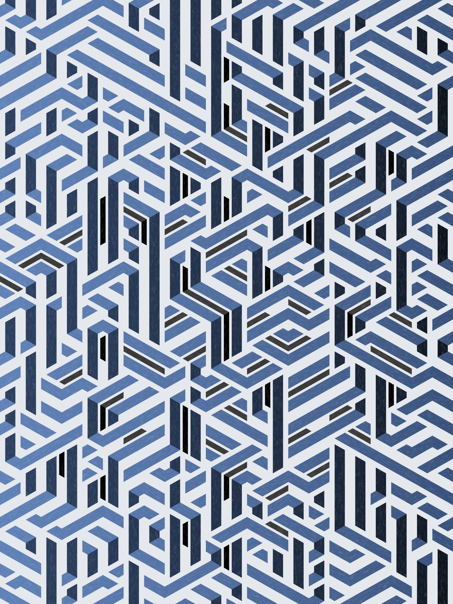 Lines are bent and shaded. There are no wrong turns. [Interaction in live view: press 1-7 or left/right arrow keys to see the stages of sketch construction: 1-grid, 2-divide, 3-tile, 4-bend, 5-shade, 6-color, 7-texture]