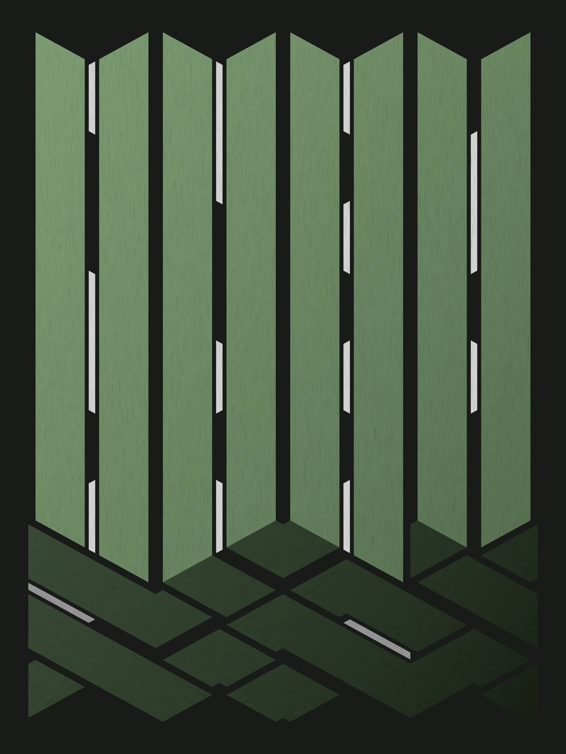 Lines are bent and shaded. There are no wrong turns. [Interaction in live view: press 1-7 or left/right arrow keys to see the stages of sketch construction: 1-grid, 2-divide, 3-tile, 4-bend, 5-shade, 6-color, 7-texture]