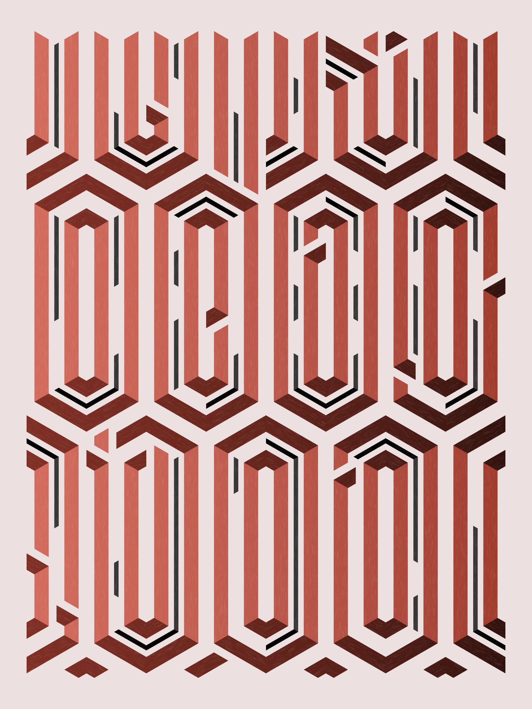 Lines are bent and shaded. There are no wrong turns. [Interaction in live view: press 1-7 or left/right arrow keys to see the stages of sketch construction: 1-grid, 2-divide, 3-tile, 4-bend, 5-shade, 6-color, 7-texture]