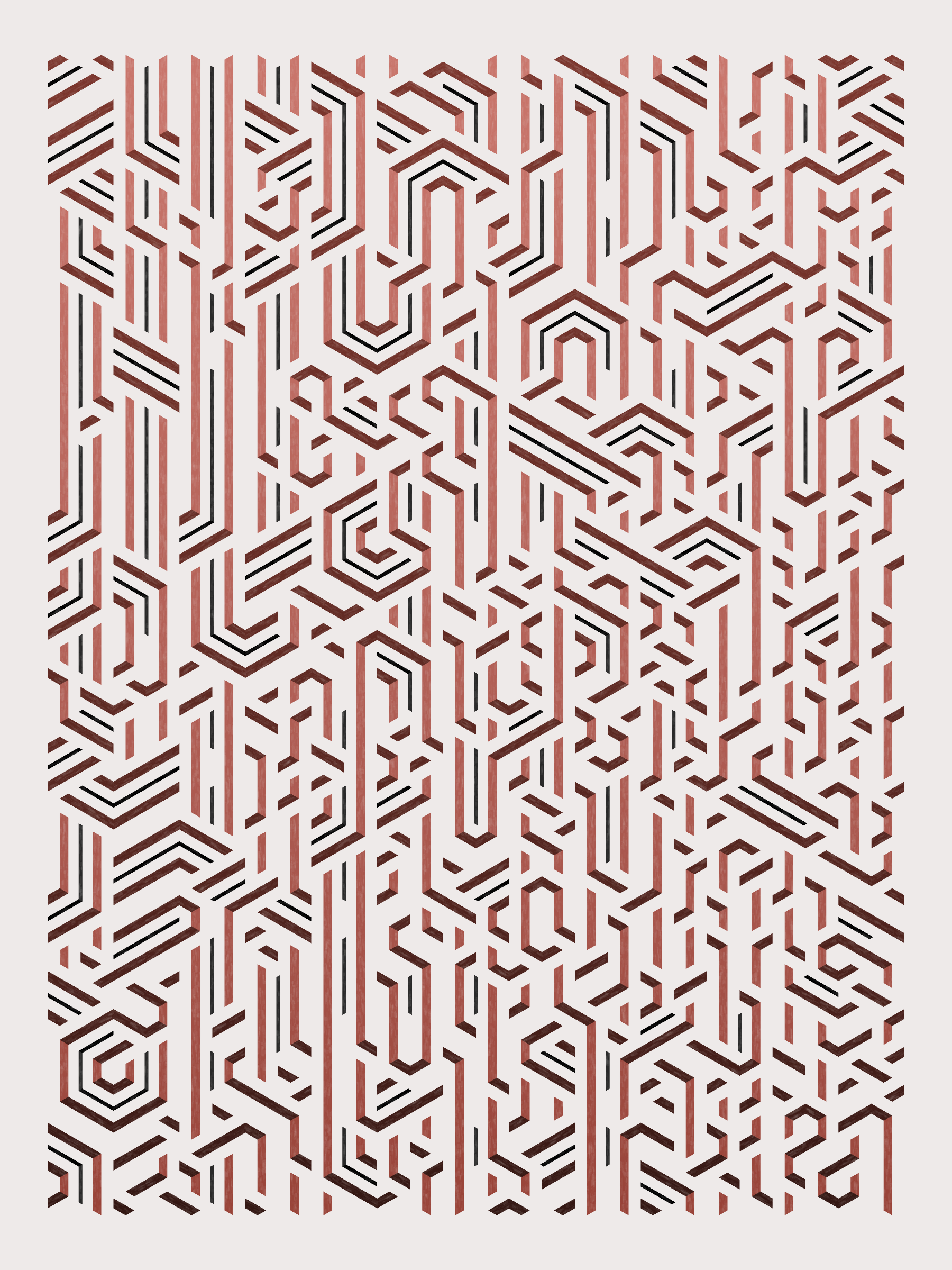 Lines are bent and shaded. There are no wrong turns. [Interaction in live view: press 1-7 or left/right arrow keys to see the stages of sketch construction: 1-grid, 2-divide, 3-tile, 4-bend, 5-shade, 6-color, 7-texture]