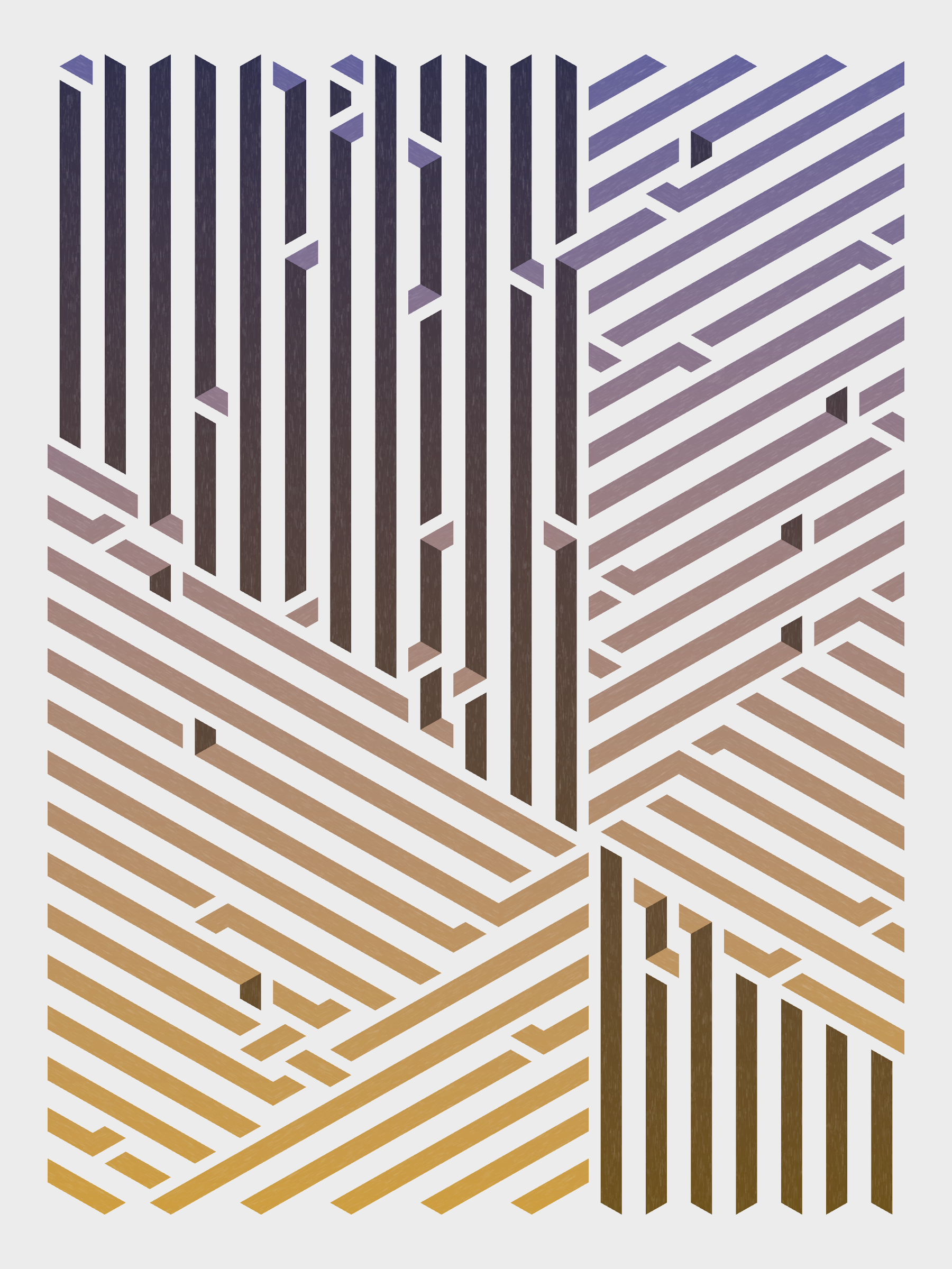 Lines are bent and shaded. There are no wrong turns. [Interaction in live view: press 1-7 or left/right arrow keys to see the stages of sketch construction: 1-grid, 2-divide, 3-tile, 4-bend, 5-shade, 6-color, 7-texture]