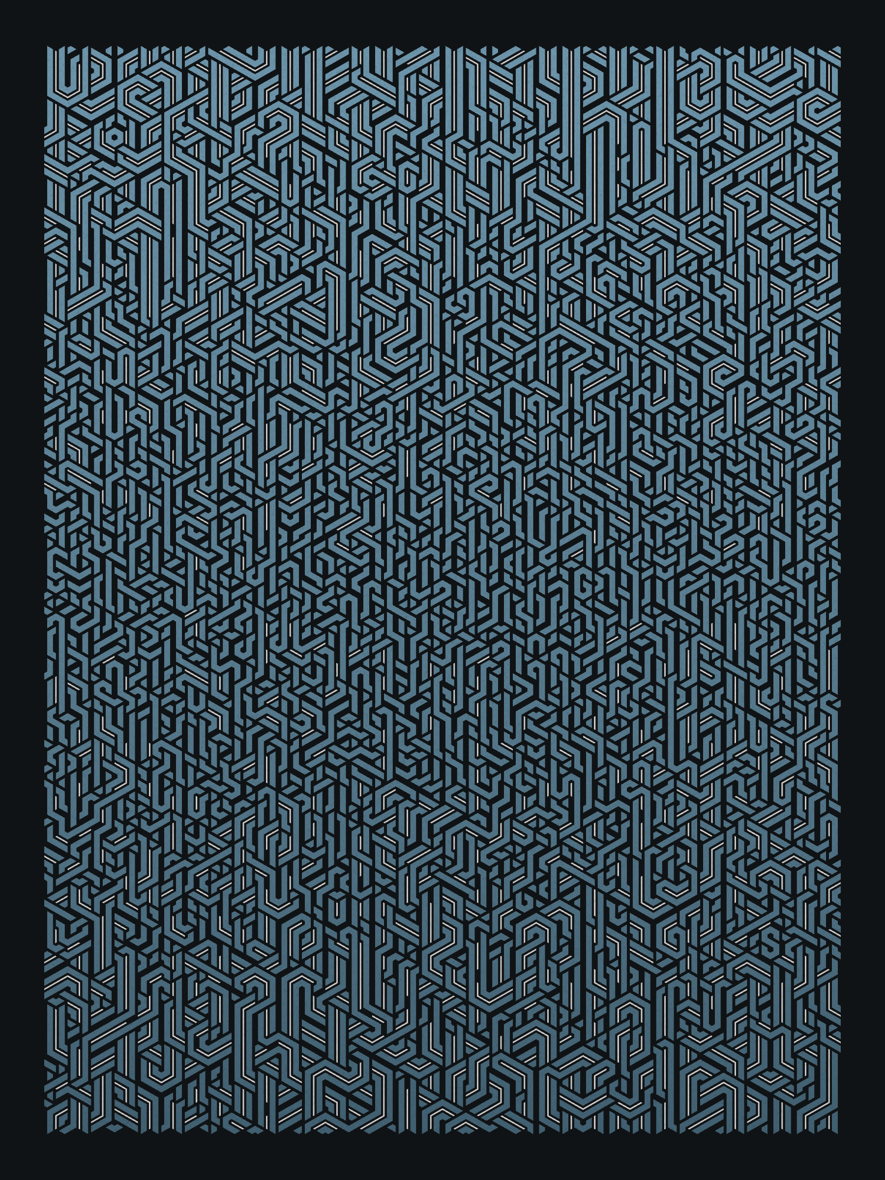 Lines are bent and shaded. There are no wrong turns. [Interaction in live view: press 1-7 or left/right arrow keys to see the stages of sketch construction: 1-grid, 2-divide, 3-tile, 4-bend, 5-shade, 6-color, 7-texture]