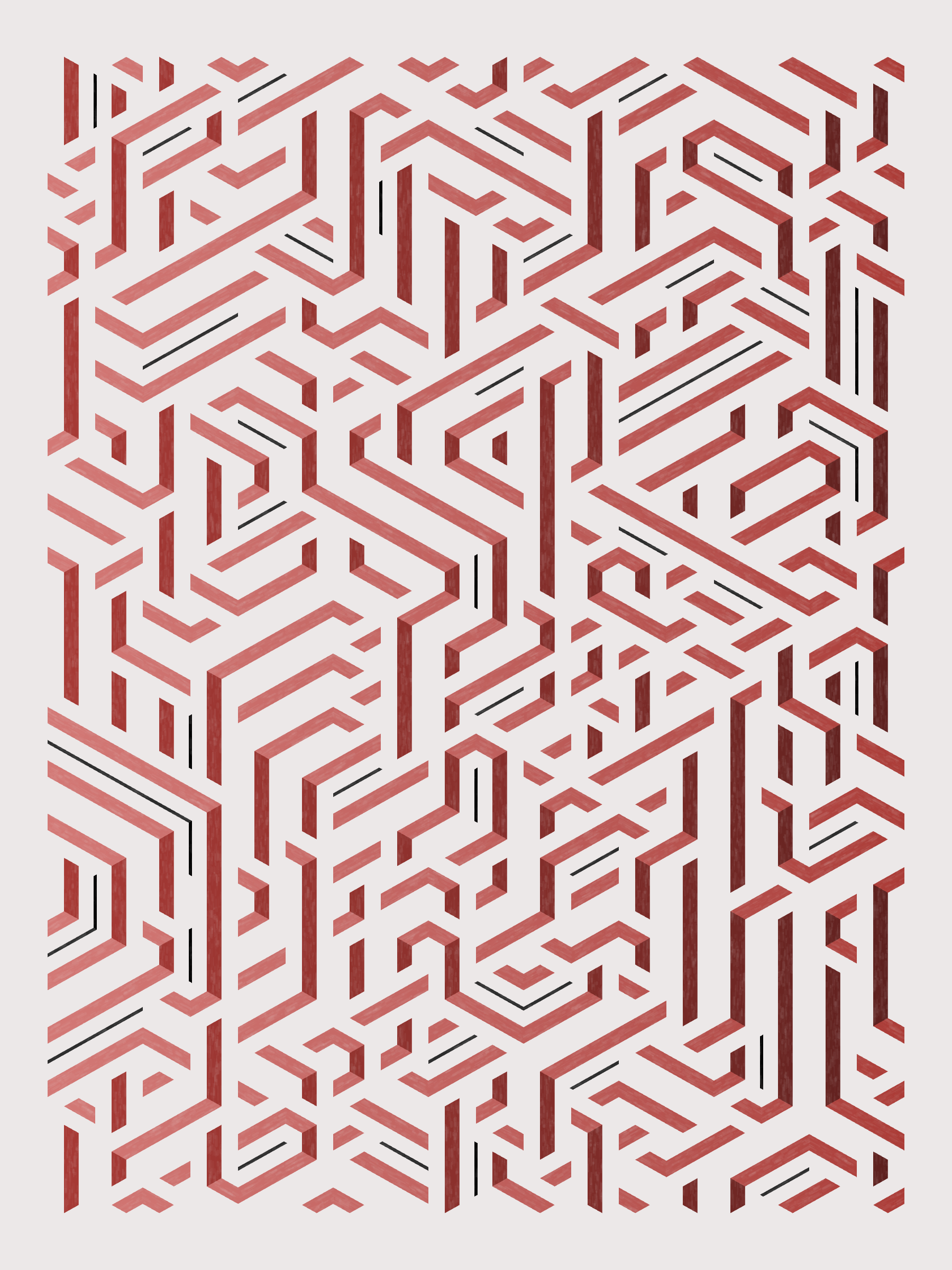 Lines are bent and shaded. There are no wrong turns. [Interaction in live view: press 1-7 or left/right arrow keys to see the stages of sketch construction: 1-grid, 2-divide, 3-tile, 4-bend, 5-shade, 6-color, 7-texture]