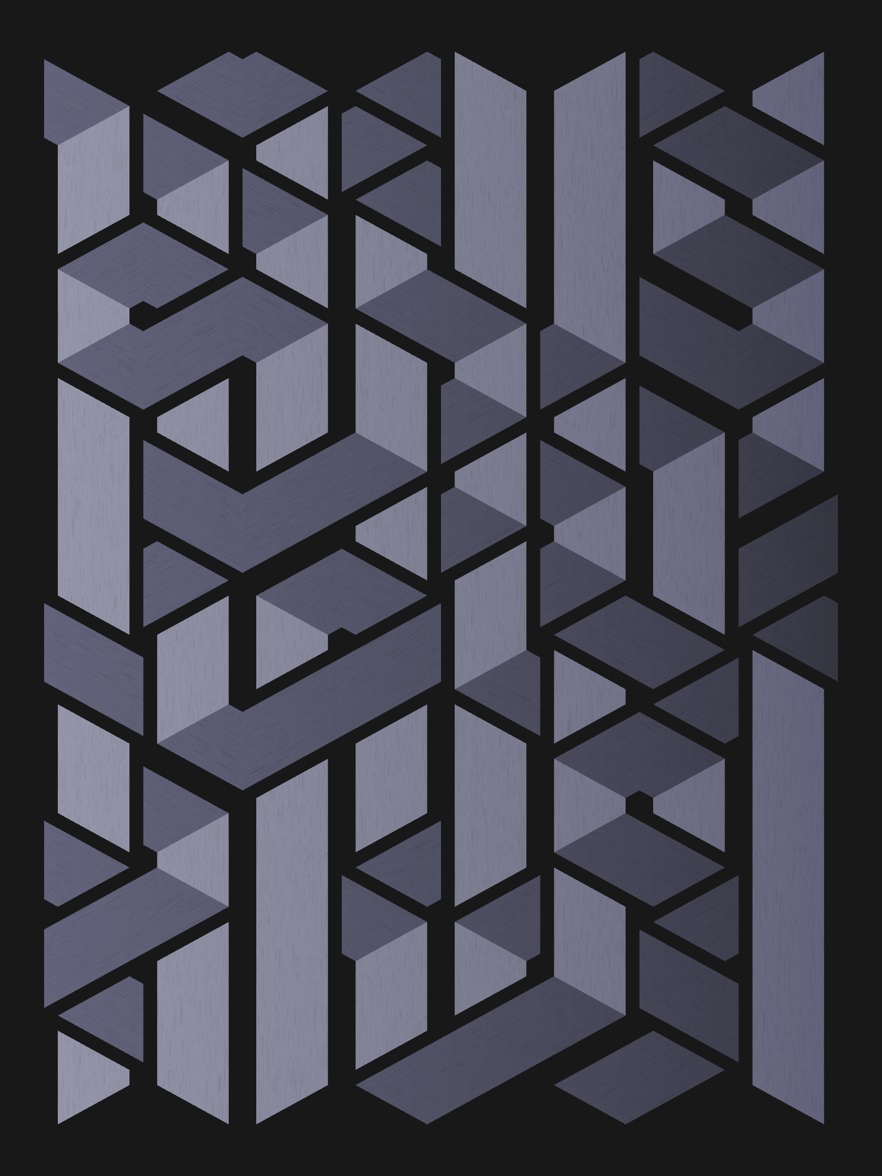 Lines are bent and shaded. There are no wrong turns. [Interaction in live view: press 1-7 or left/right arrow keys to see the stages of sketch construction: 1-grid, 2-divide, 3-tile, 4-bend, 5-shade, 6-color, 7-texture]