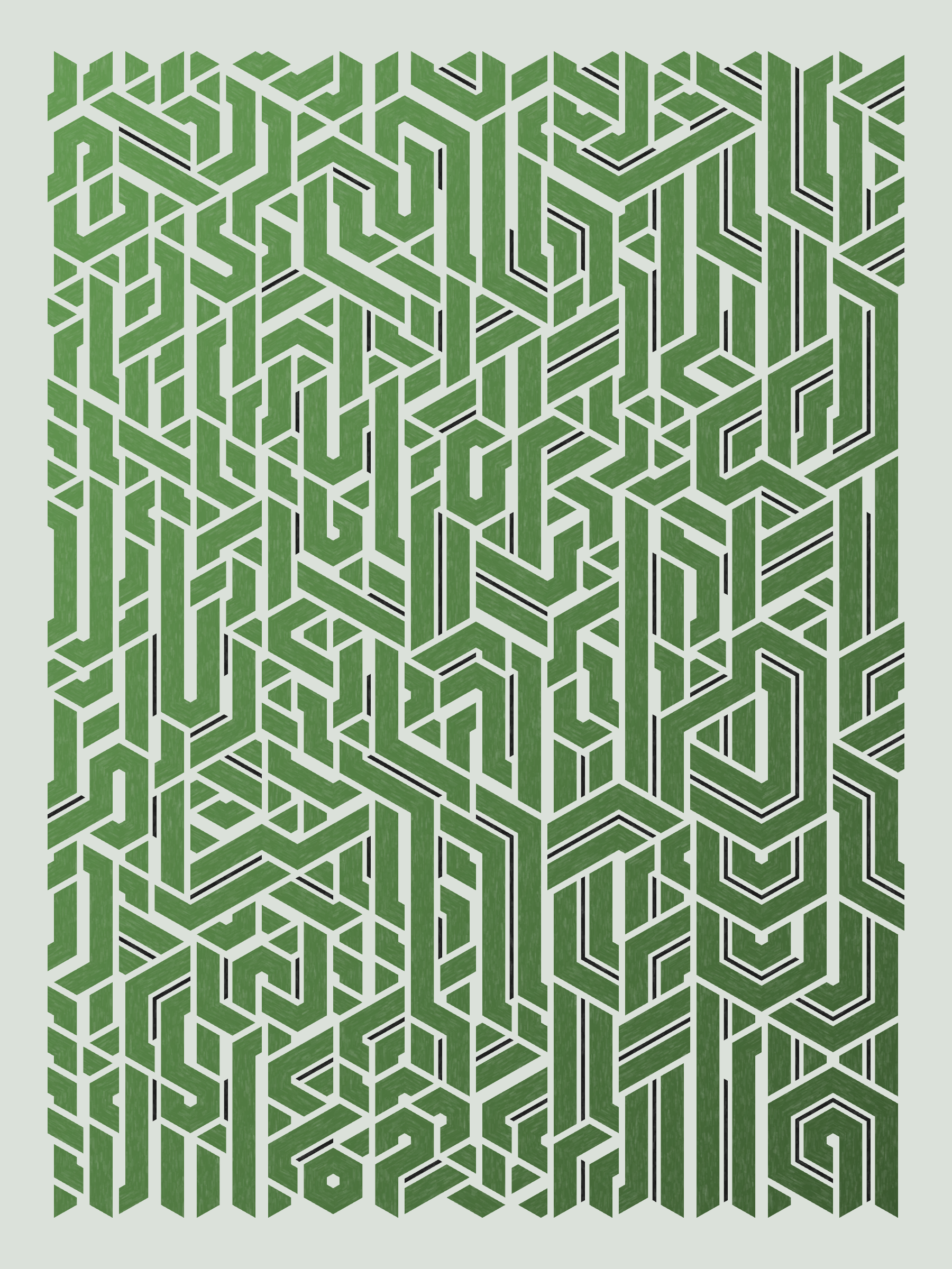 Lines are bent and shaded. There are no wrong turns. [Interaction in live view: press 1-7 or left/right arrow keys to see the stages of sketch construction: 1-grid, 2-divide, 3-tile, 4-bend, 5-shade, 6-color, 7-texture]