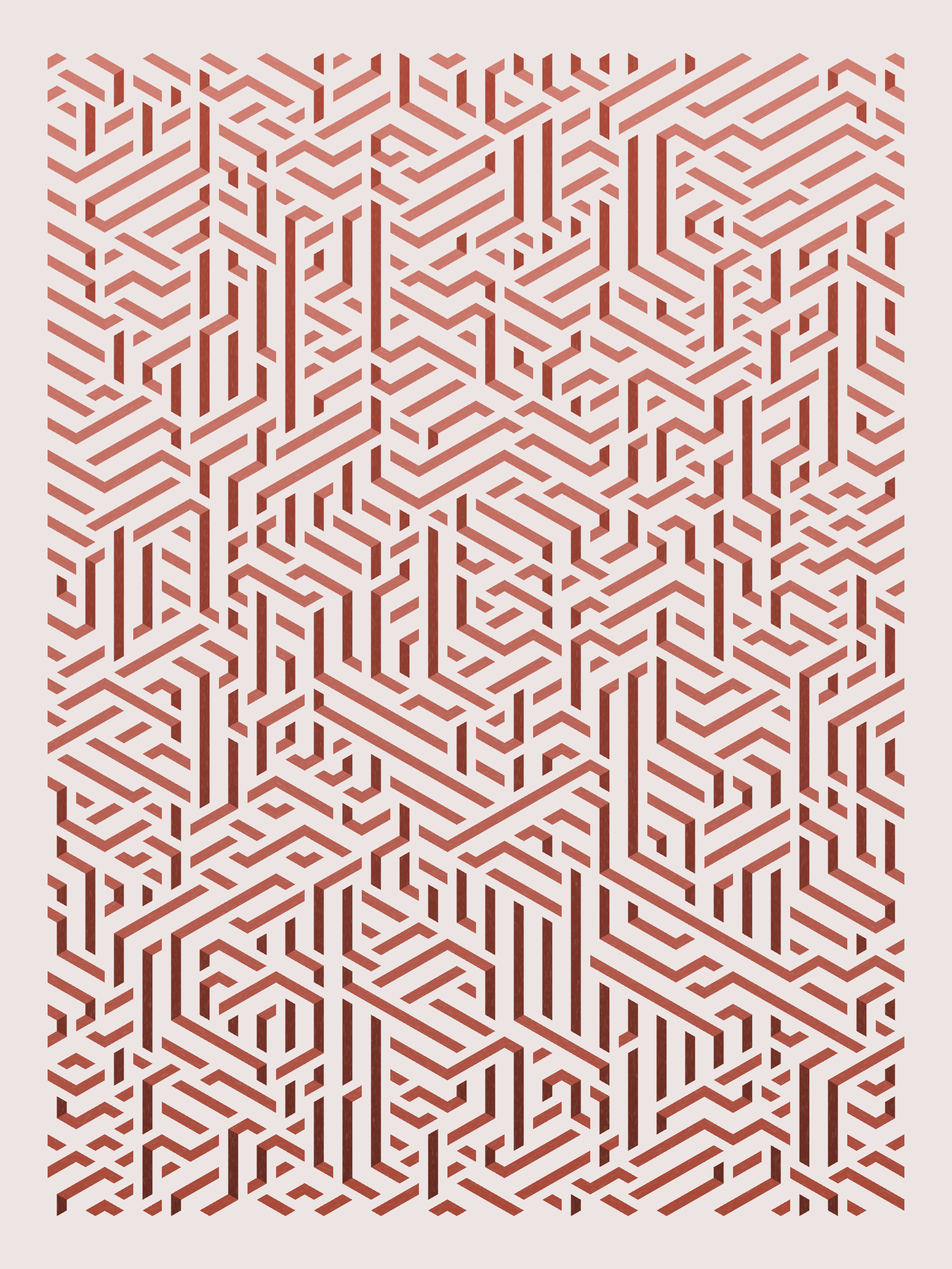 Lines are bent and shaded. There are no wrong turns. [Interaction in live view: press 1-7 or left/right arrow keys to see the stages of sketch construction: 1-grid, 2-divide, 3-tile, 4-bend, 5-shade, 6-color, 7-texture]