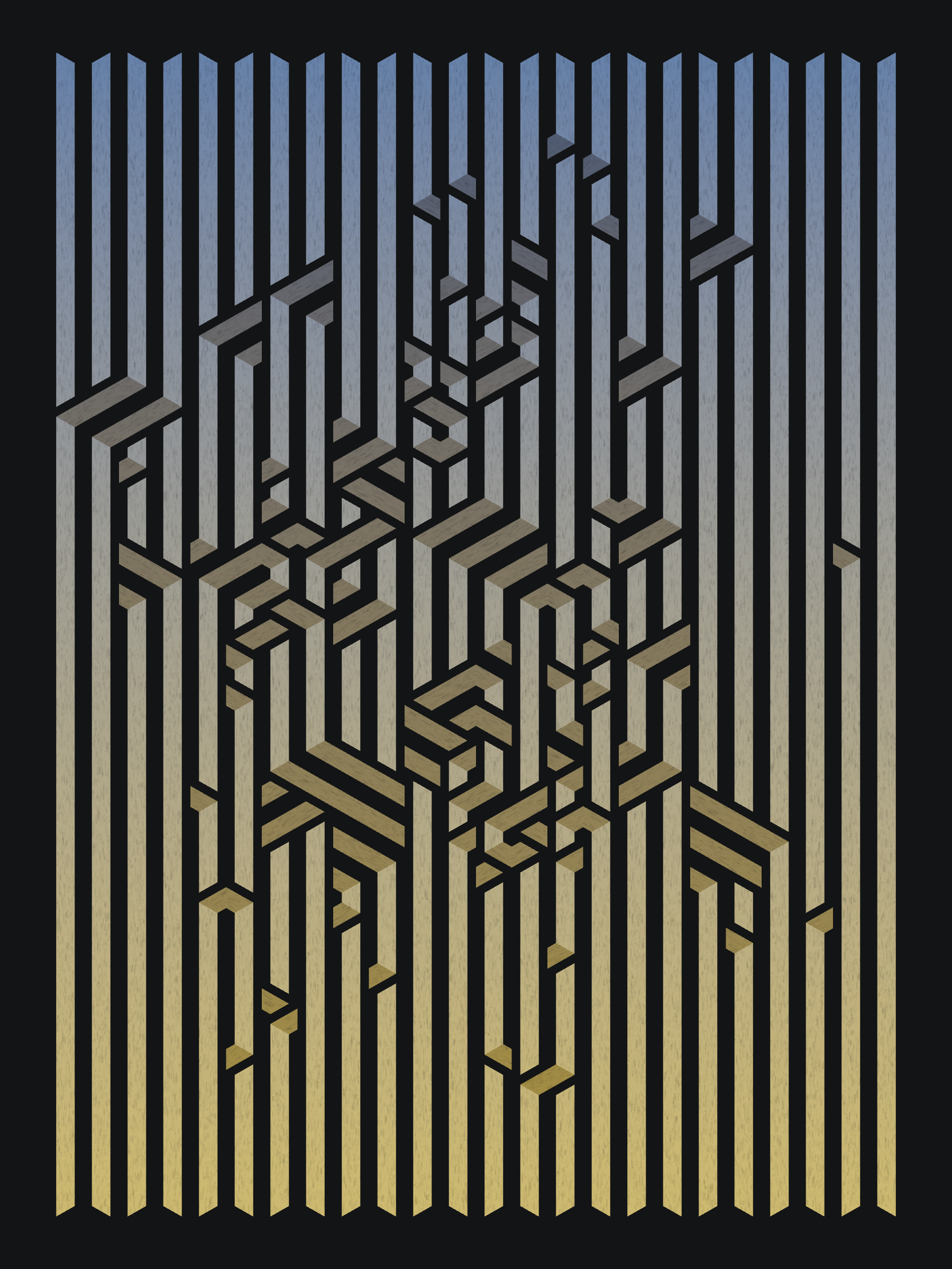 Lines are bent and shaded. There are no wrong turns. [Interaction in live view: press 1-7 or left/right arrow keys to see the stages of sketch construction: 1-grid, 2-divide, 3-tile, 4-bend, 5-shade, 6-color, 7-texture]