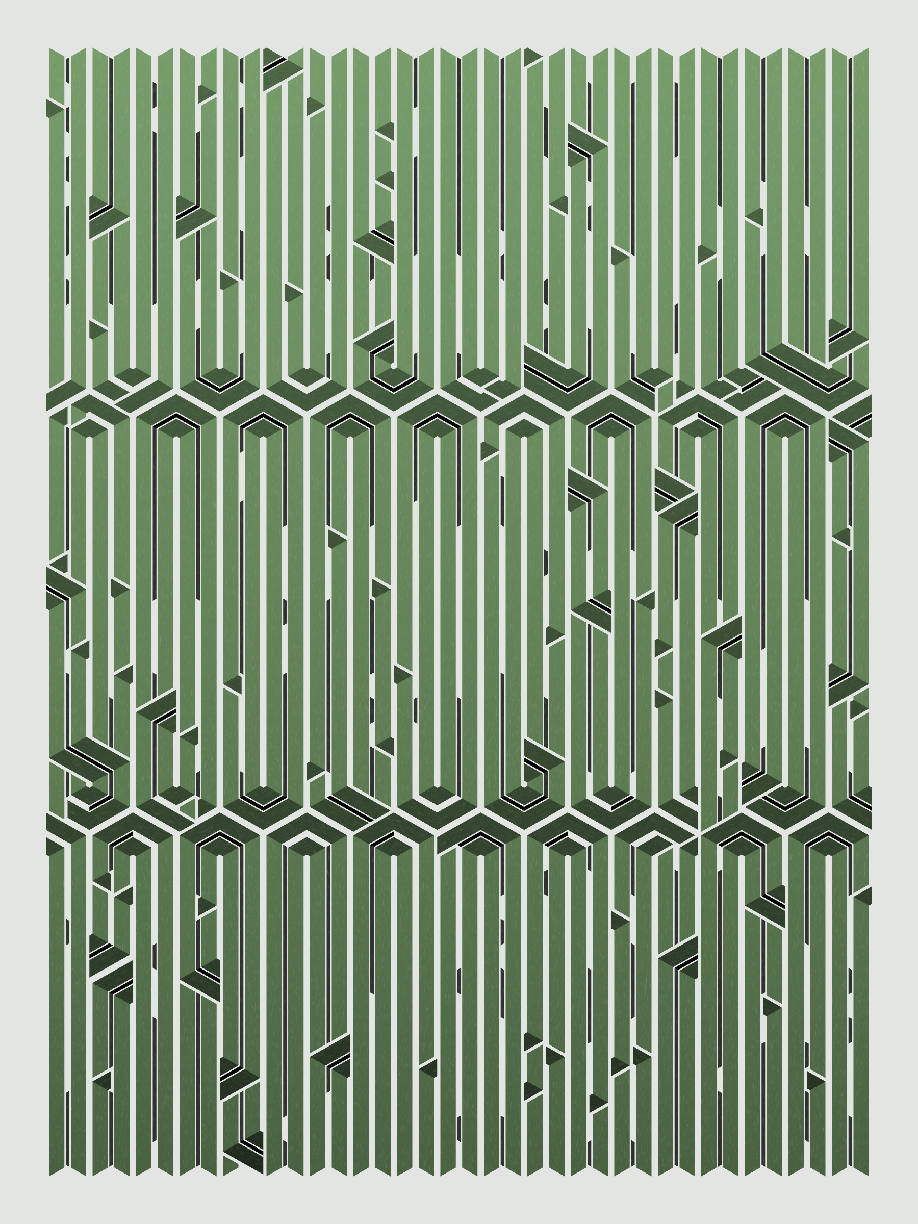Lines are bent and shaded. There are no wrong turns. [Interaction in live view: press 1-7 or left/right arrow keys to see the stages of sketch construction: 1-grid, 2-divide, 3-tile, 4-bend, 5-shade, 6-color, 7-texture]