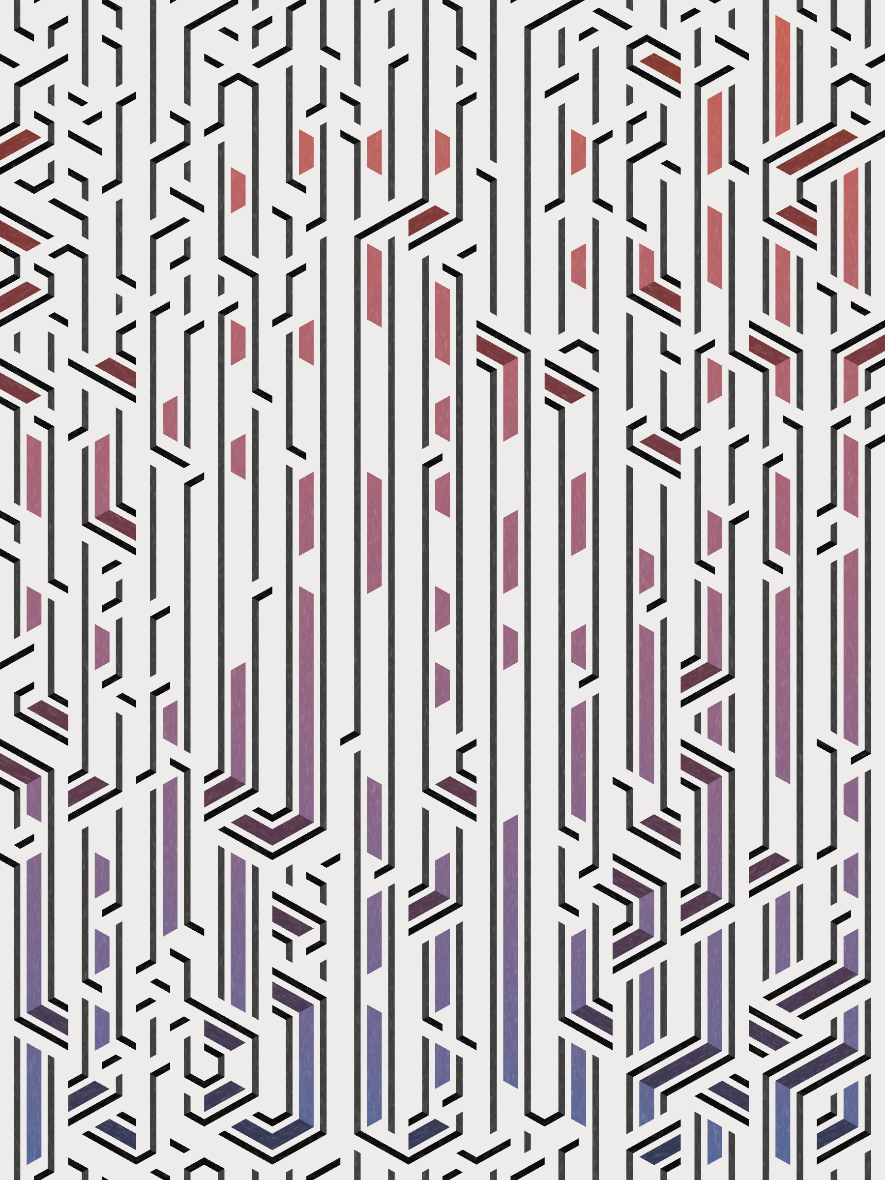 Lines are bent and shaded. There are no wrong turns. [Interaction in live view: press 1-7 or left/right arrow keys to see the stages of sketch construction: 1-grid, 2-divide, 3-tile, 4-bend, 5-shade, 6-color, 7-texture]
