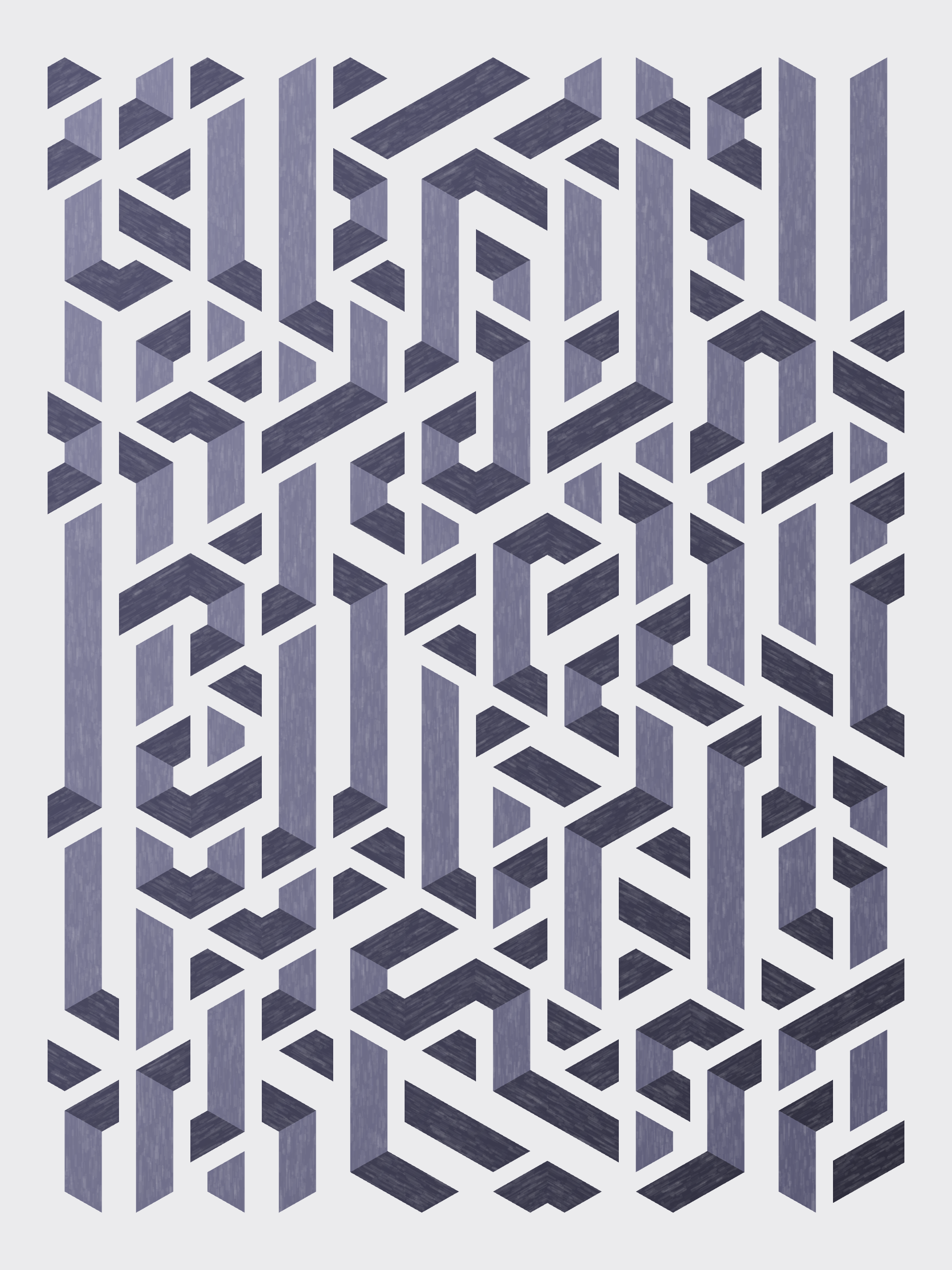 Lines are bent and shaded. There are no wrong turns. [Interaction in live view: press 1-7 or left/right arrow keys to see the stages of sketch construction: 1-grid, 2-divide, 3-tile, 4-bend, 5-shade, 6-color, 7-texture]