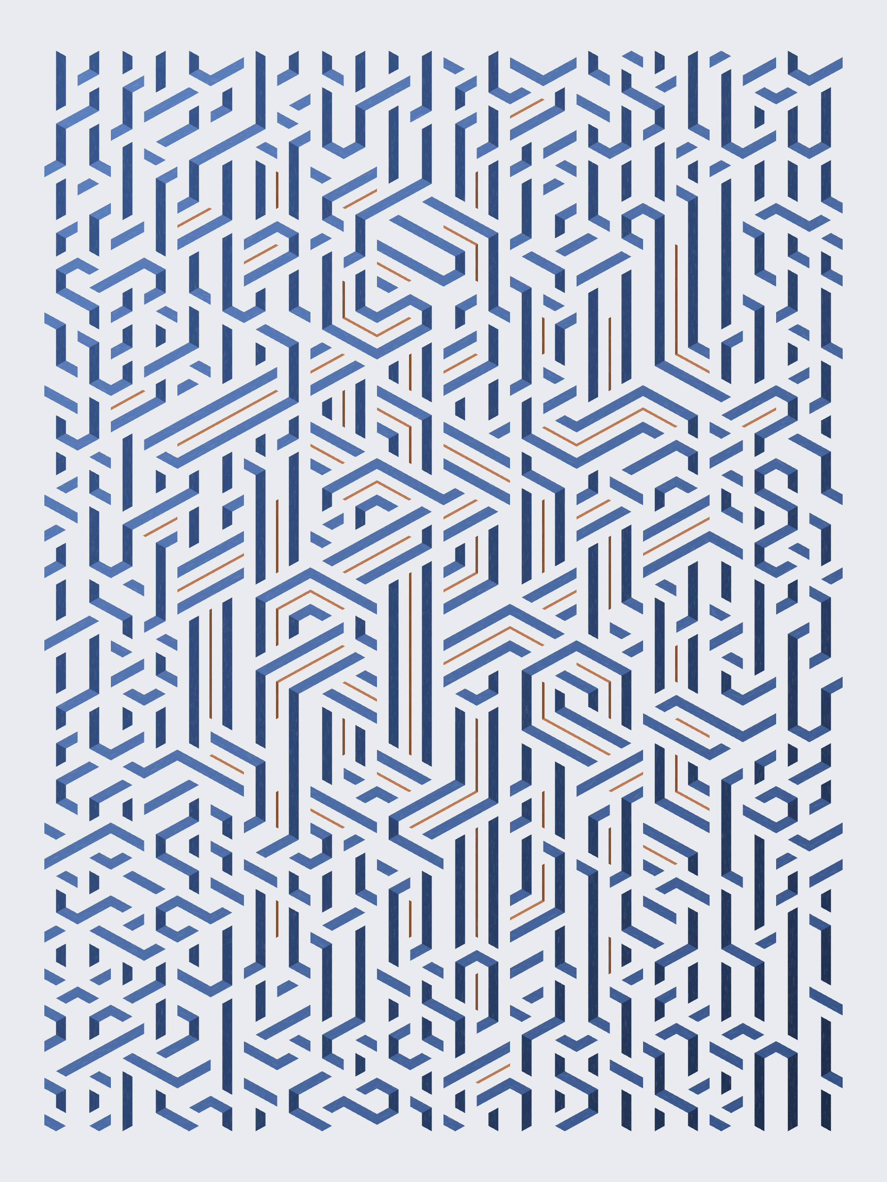 Lines are bent and shaded. There are no wrong turns. [Interaction in live view: press 1-7 or left/right arrow keys to see the stages of sketch construction: 1-grid, 2-divide, 3-tile, 4-bend, 5-shade, 6-color, 7-texture]