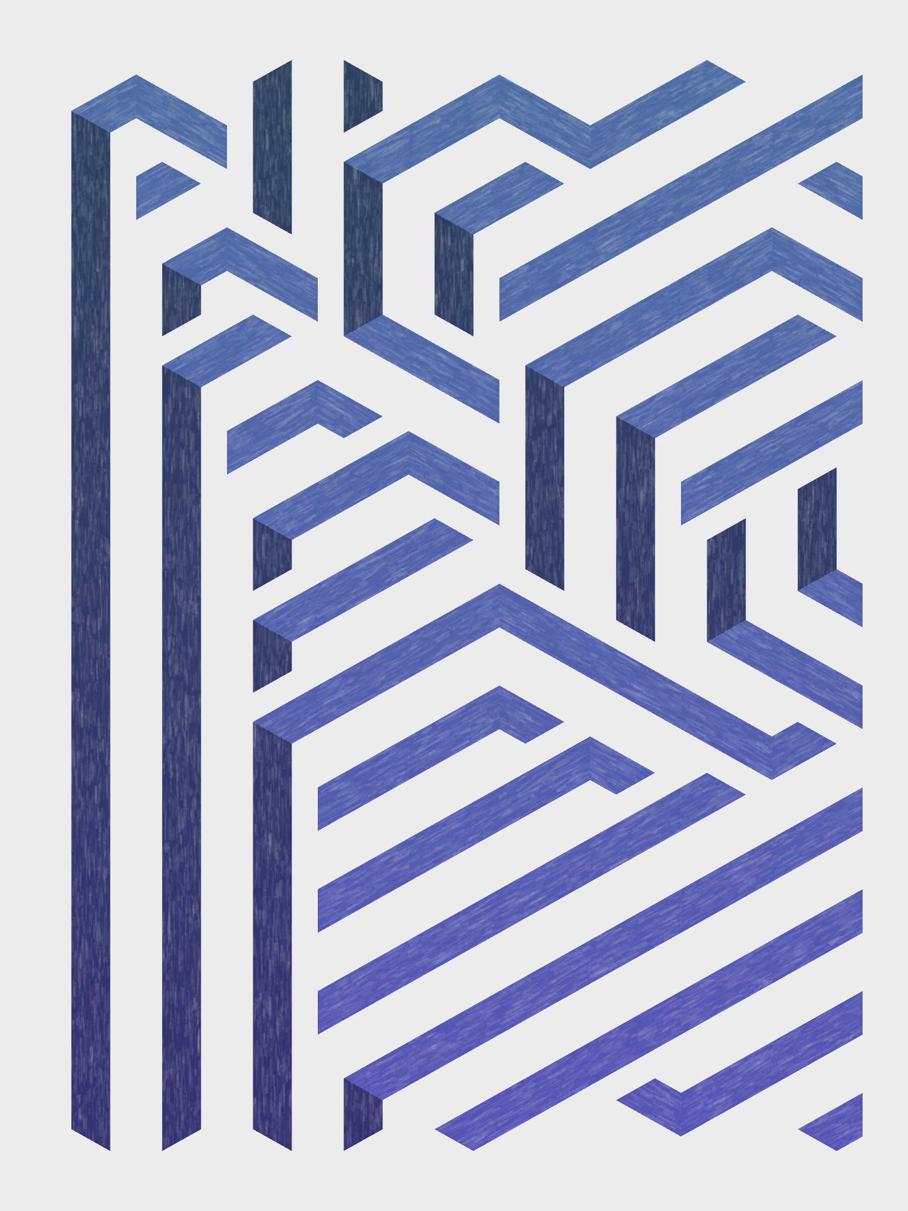 Lines are bent and shaded. There are no wrong turns. [Interaction in live view: press 1-7 or left/right arrow keys to see the stages of sketch construction: 1-grid, 2-divide, 3-tile, 4-bend, 5-shade, 6-color, 7-texture]