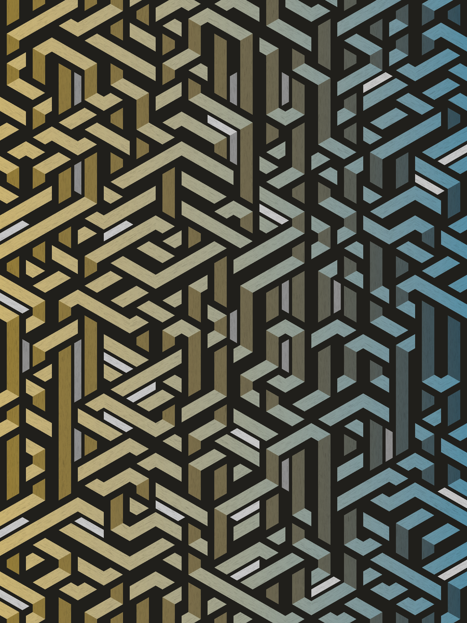 Lines are bent and shaded. There are no wrong turns. [Interaction in live view: press 1-7 or left/right arrow keys to see the stages of sketch construction: 1-grid, 2-divide, 3-tile, 4-bend, 5-shade, 6-color, 7-texture]