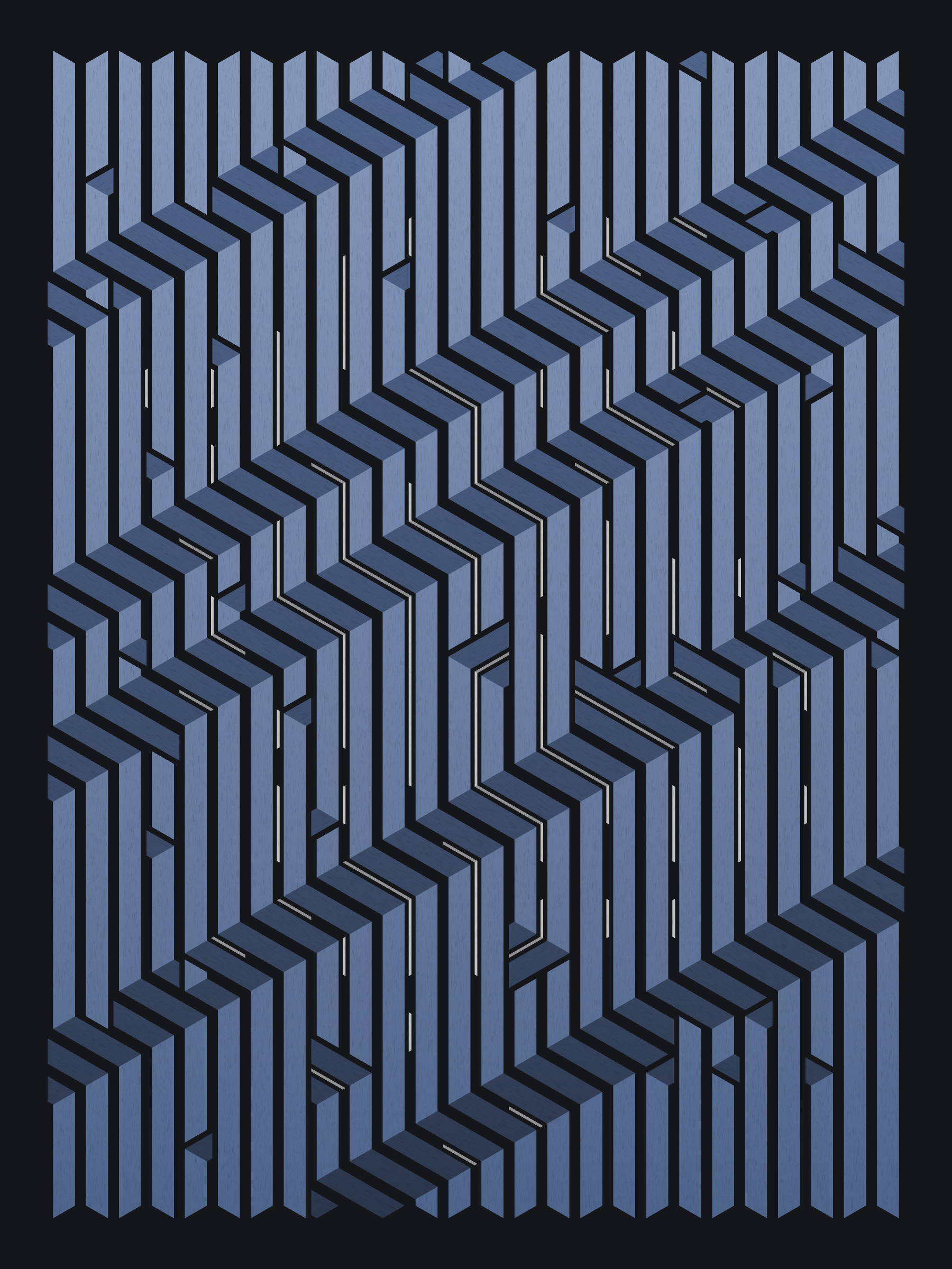 Lines are bent and shaded. There are no wrong turns. [Interaction in live view: press 1-7 or left/right arrow keys to see the stages of sketch construction: 1-grid, 2-divide, 3-tile, 4-bend, 5-shade, 6-color, 7-texture]