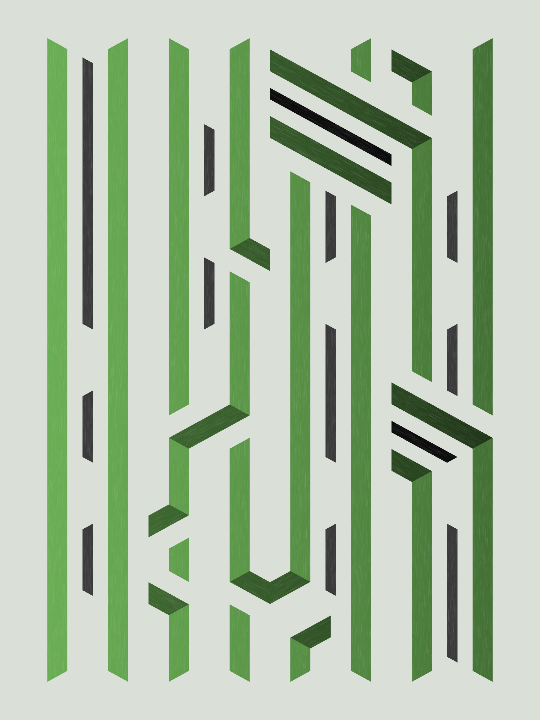 Lines are bent and shaded. There are no wrong turns. [Interaction in live view: press 1-7 or left/right arrow keys to see the stages of sketch construction: 1-grid, 2-divide, 3-tile, 4-bend, 5-shade, 6-color, 7-texture]