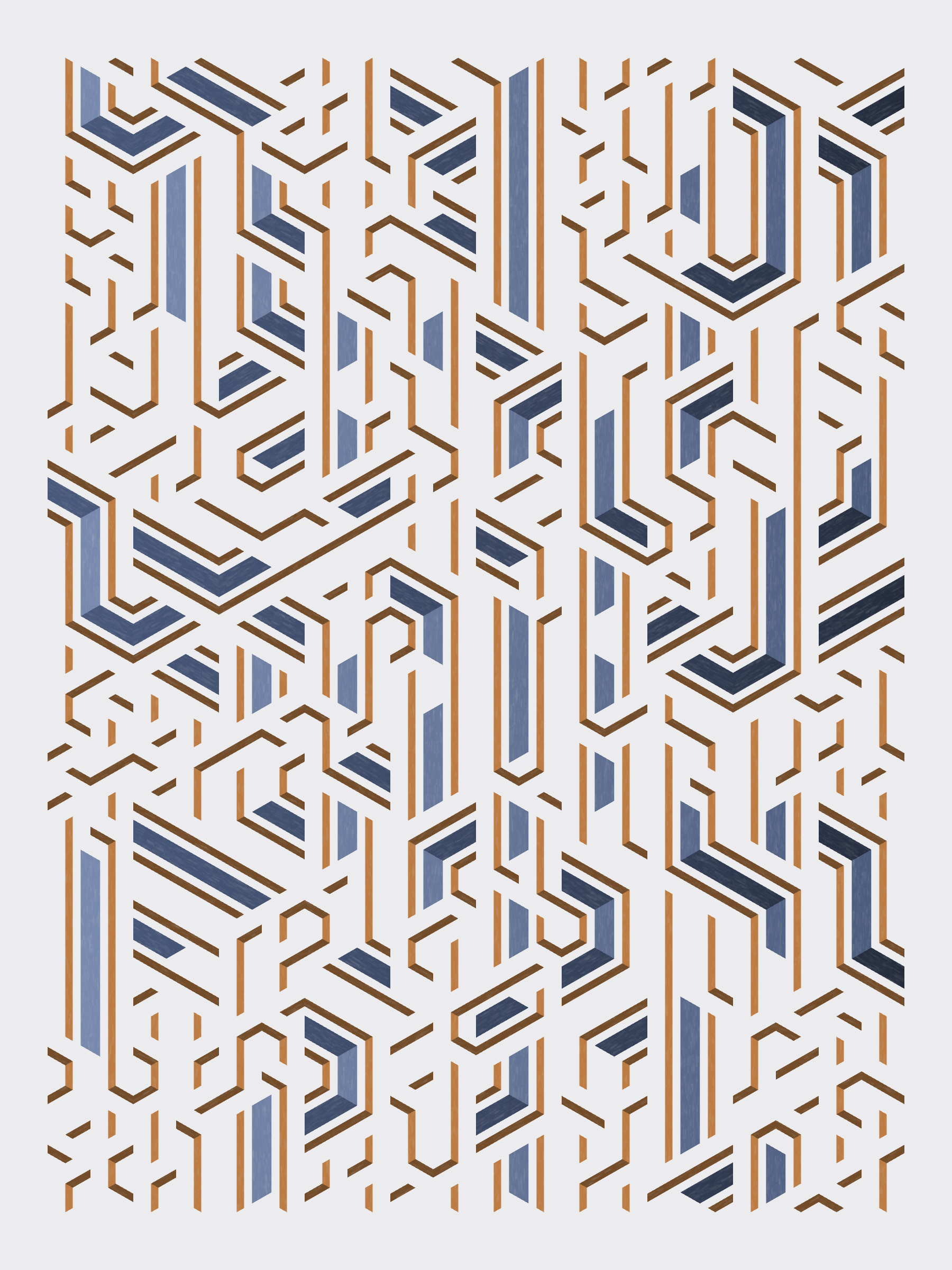 Lines are bent and shaded. There are no wrong turns. [Interaction in live view: press 1-7 or left/right arrow keys to see the stages of sketch construction: 1-grid, 2-divide, 3-tile, 4-bend, 5-shade, 6-color, 7-texture]